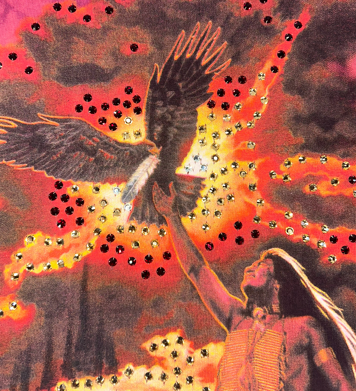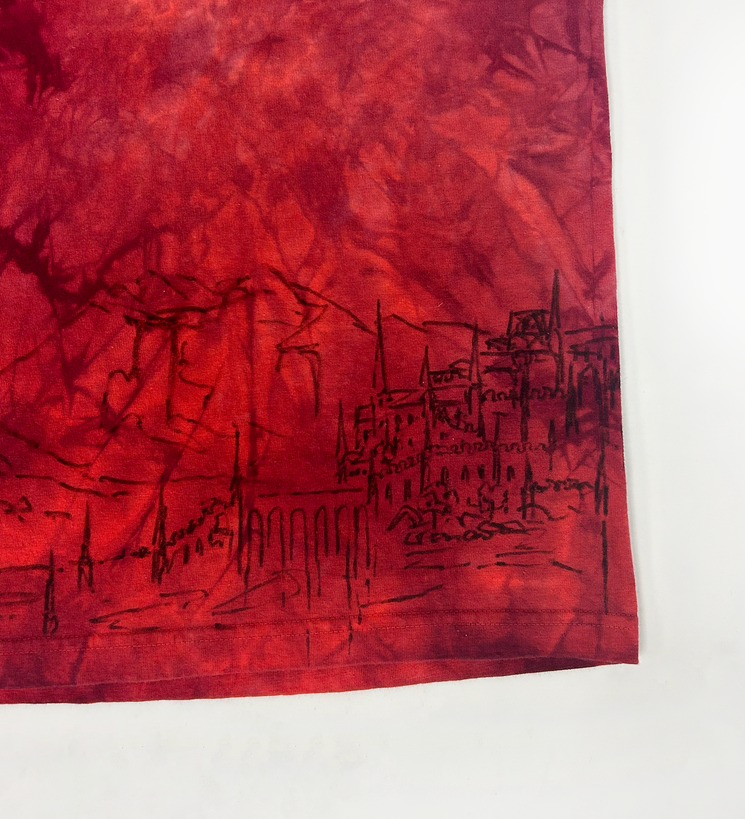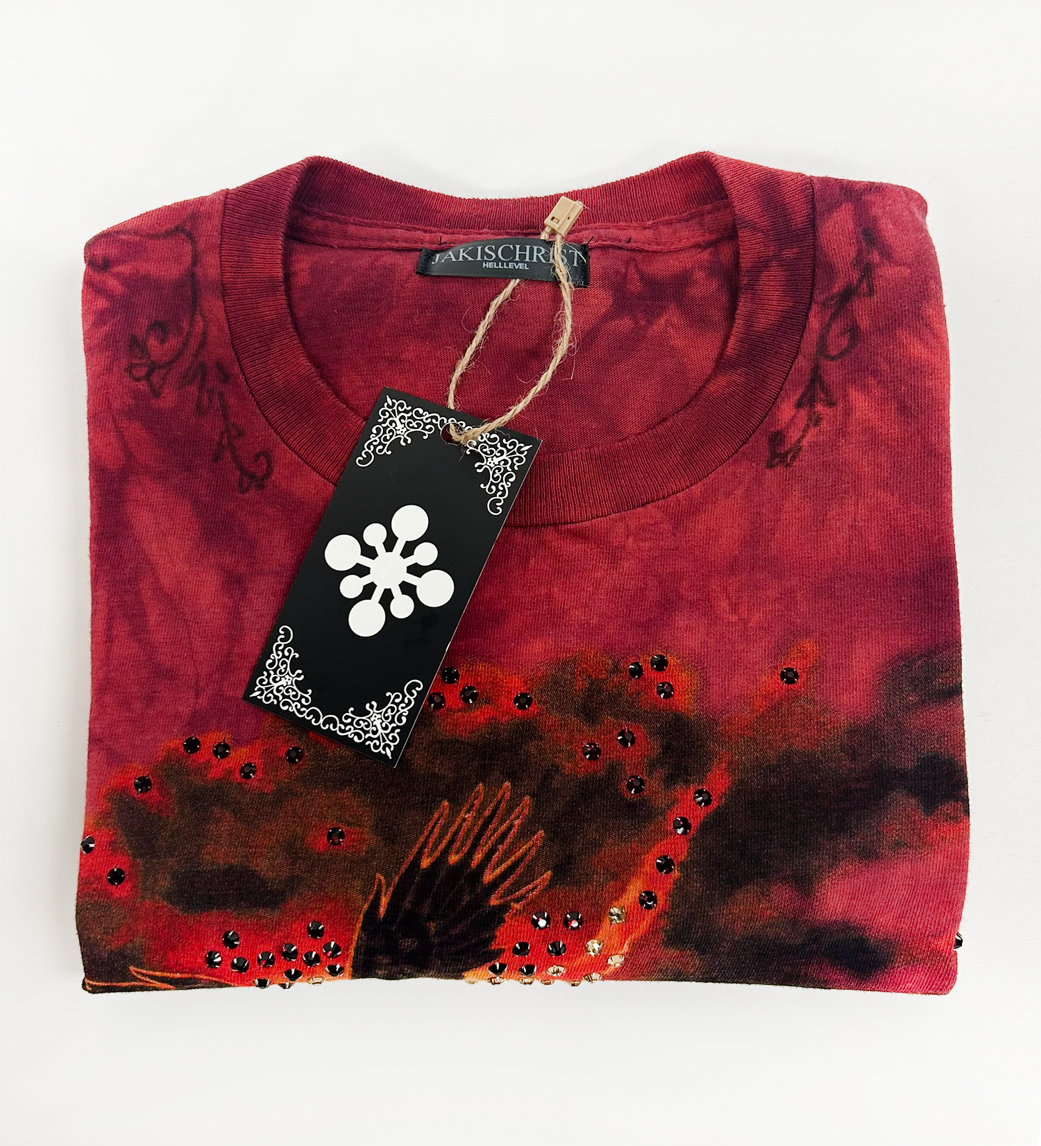1 of 1 hand dyed, drawn, and studded reworked tee.