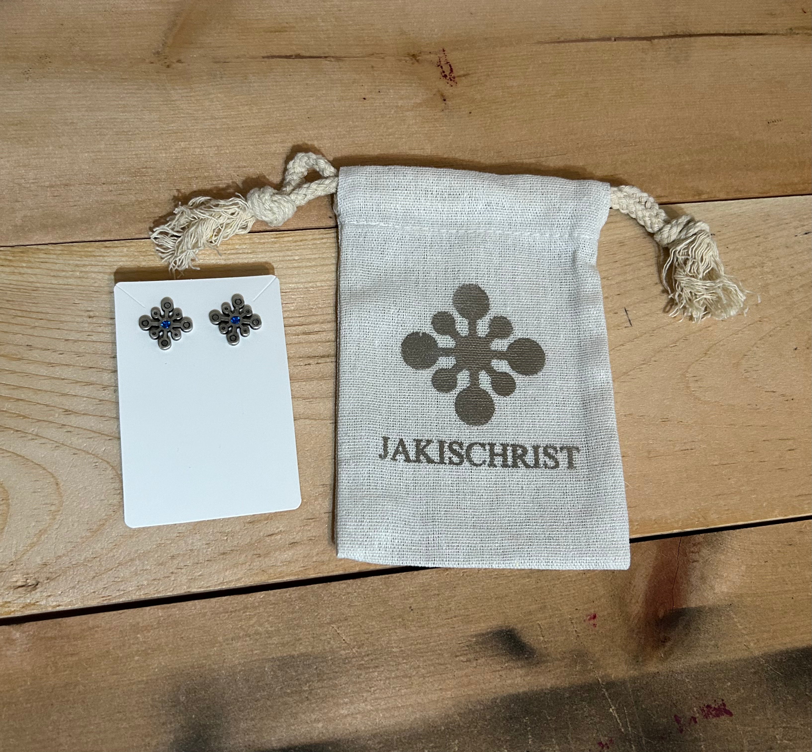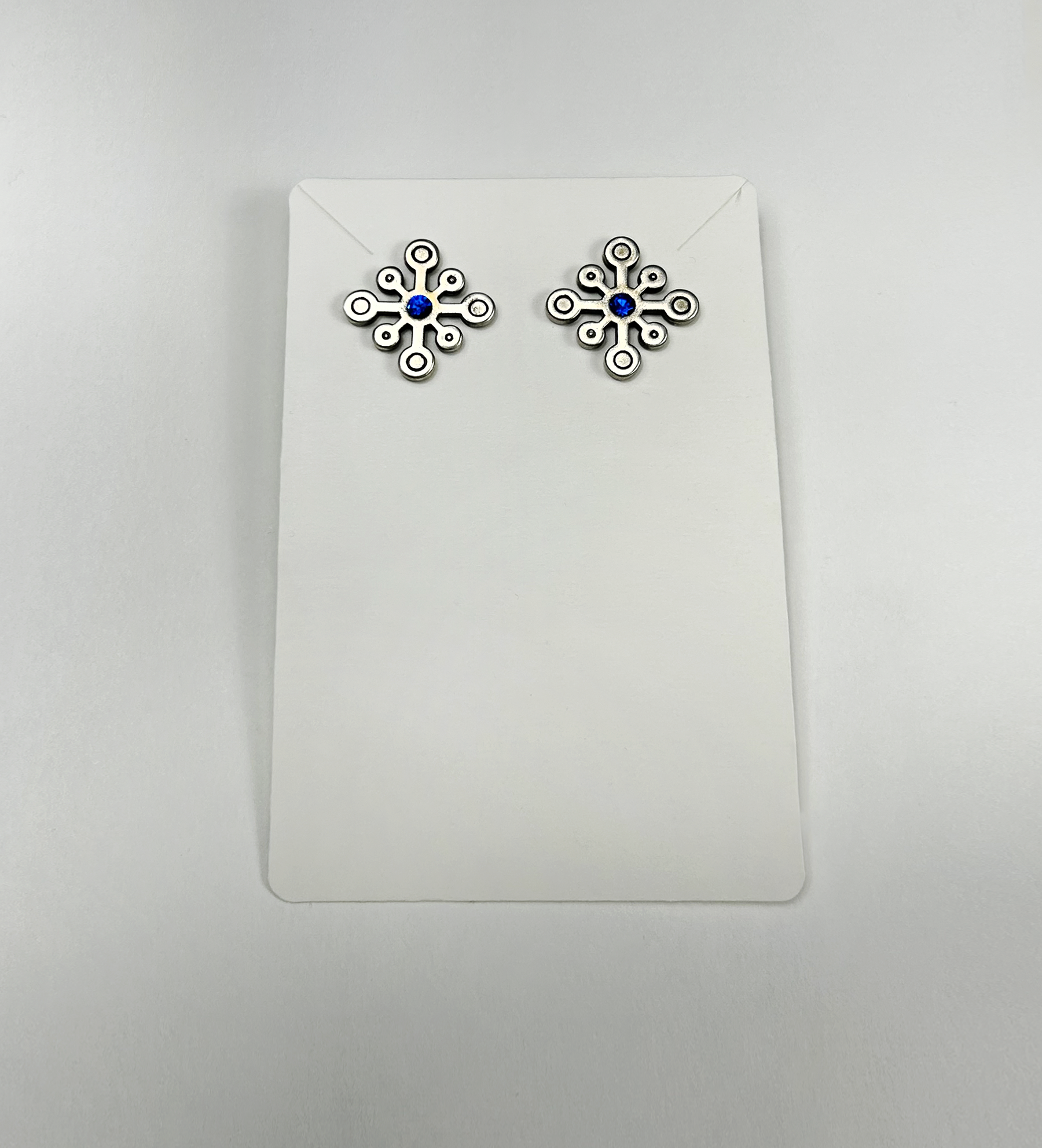 .925 sterling silver earrings, sapphire Swarovski gem.