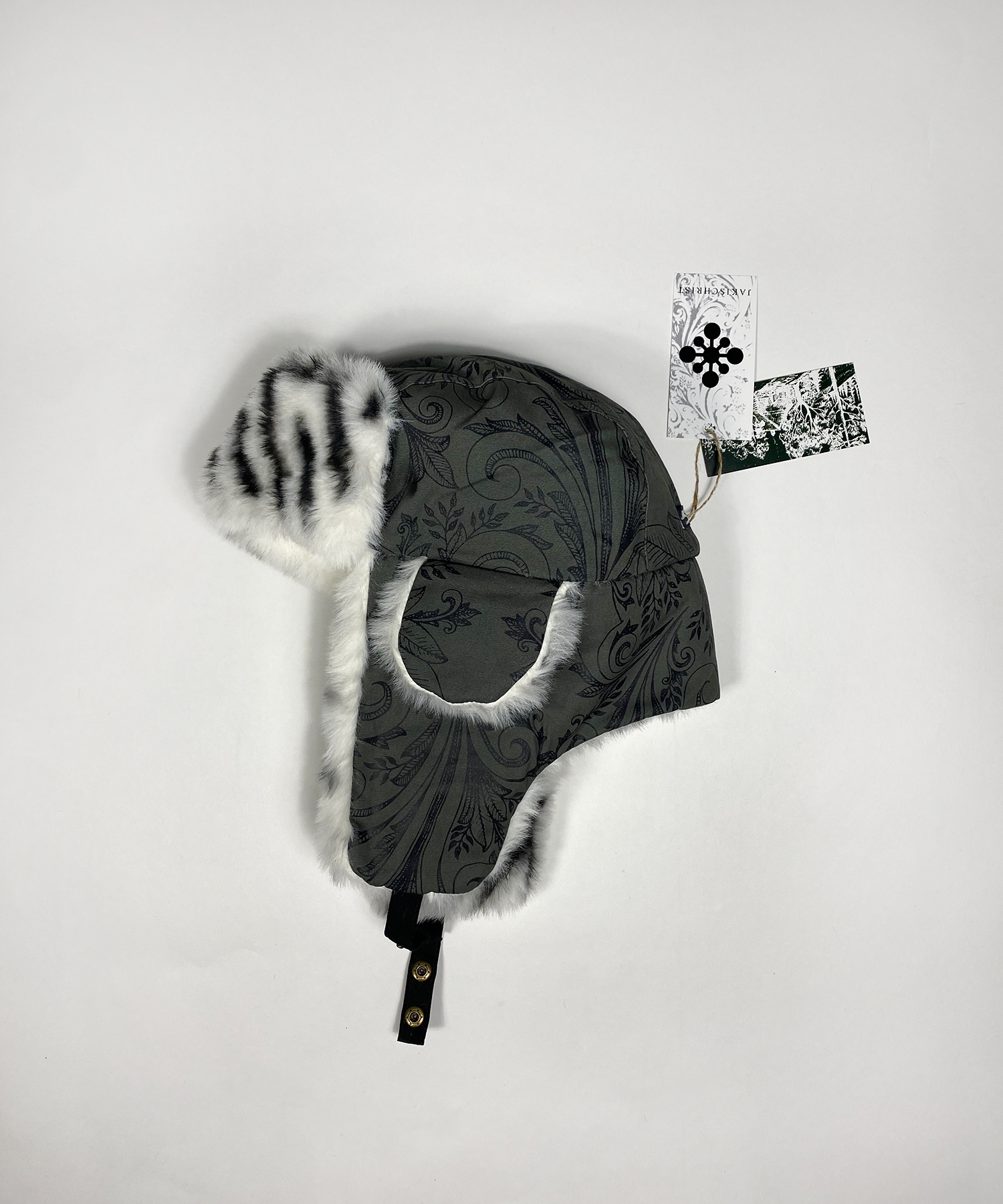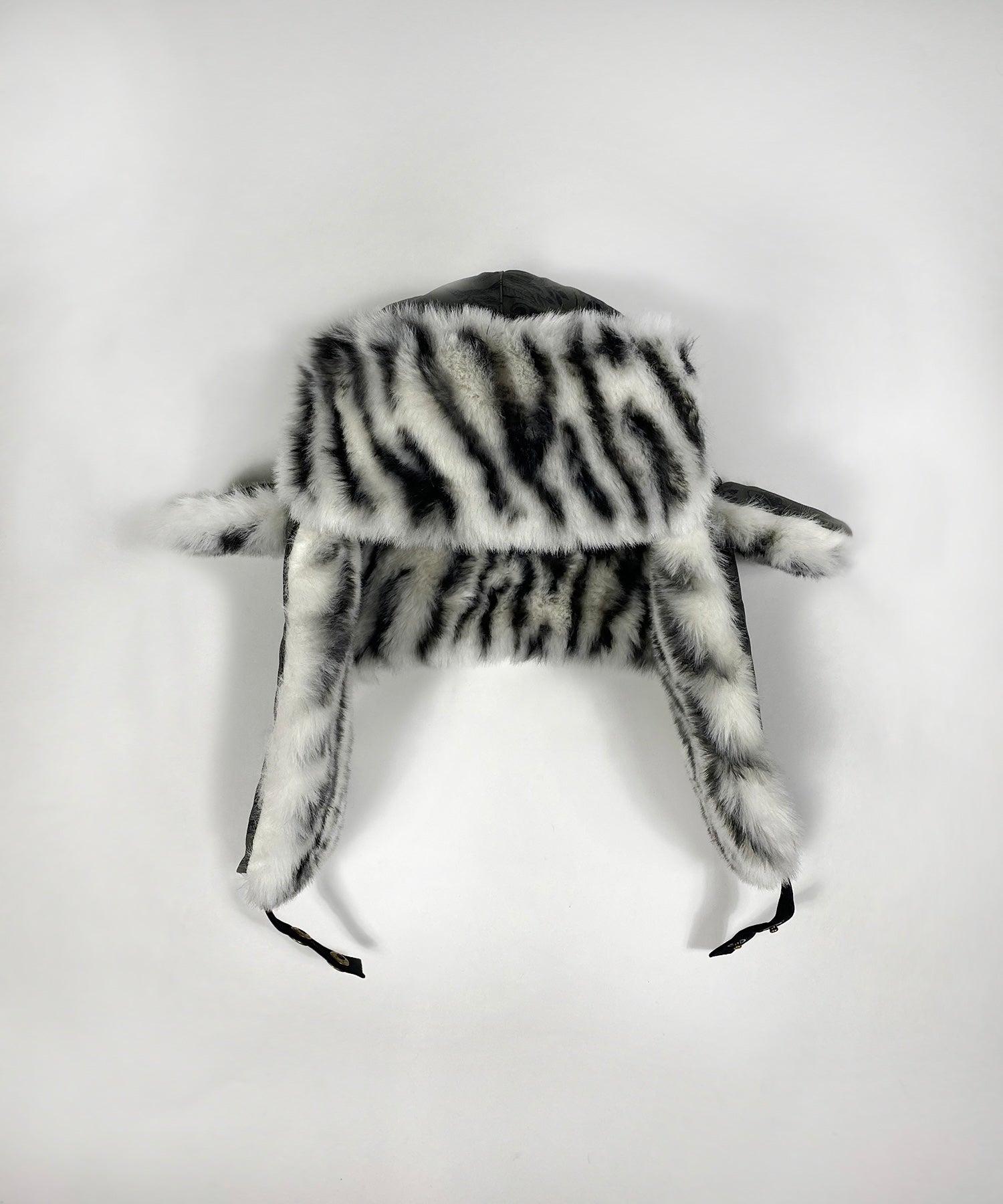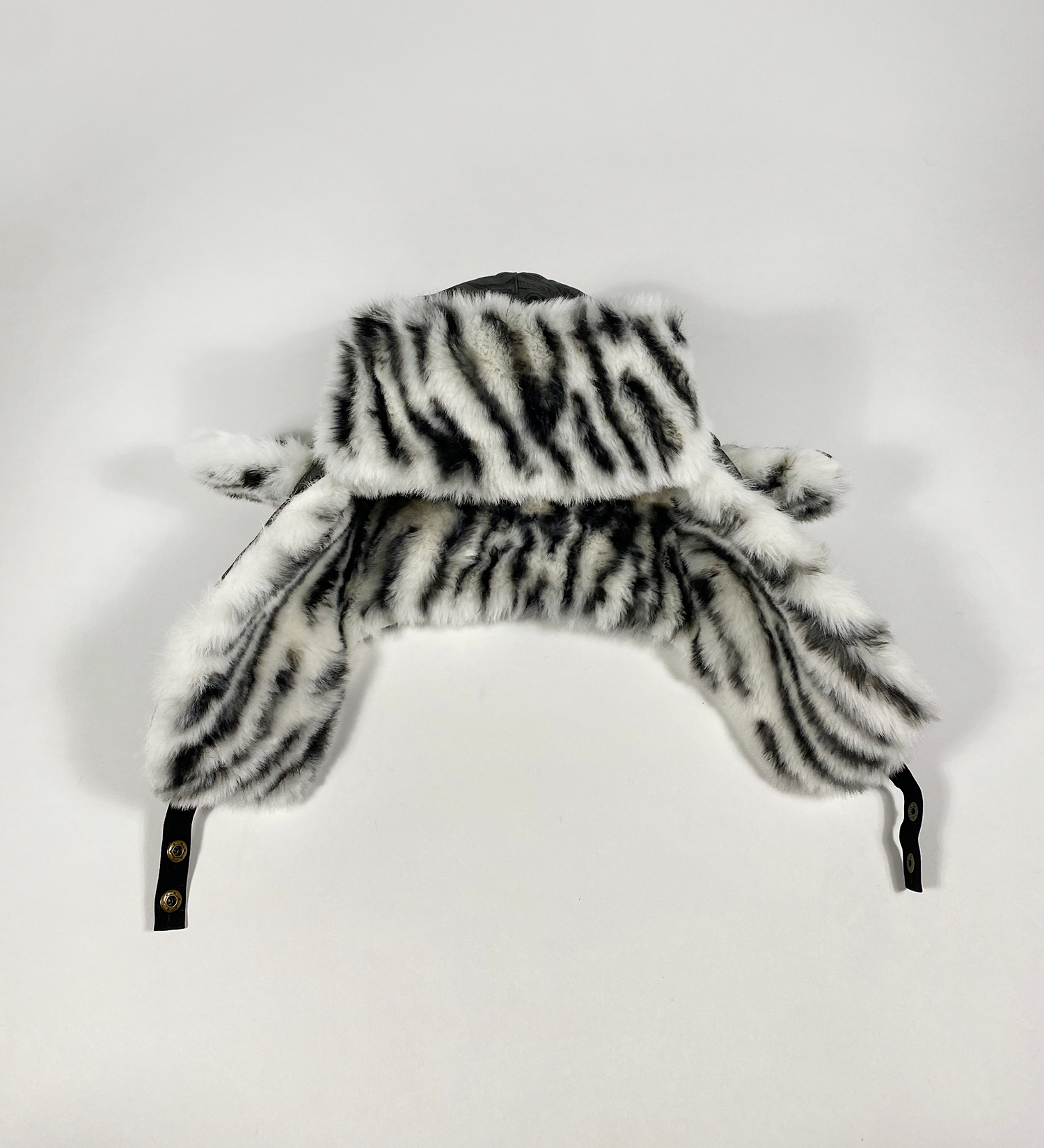 Canvas floral print ushanka w/ faux fur. Hand airbrushed zebra print, each one 1 of 1