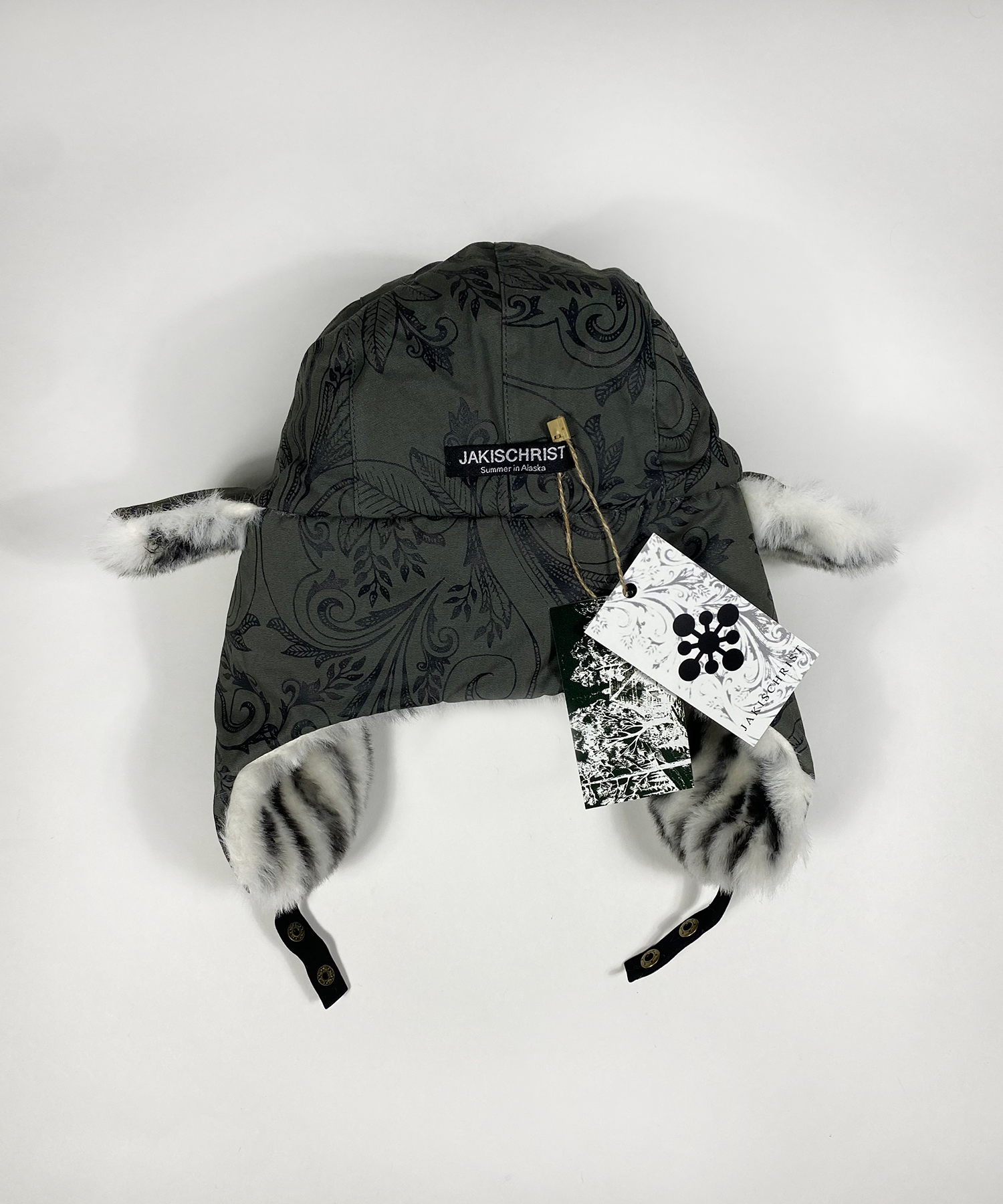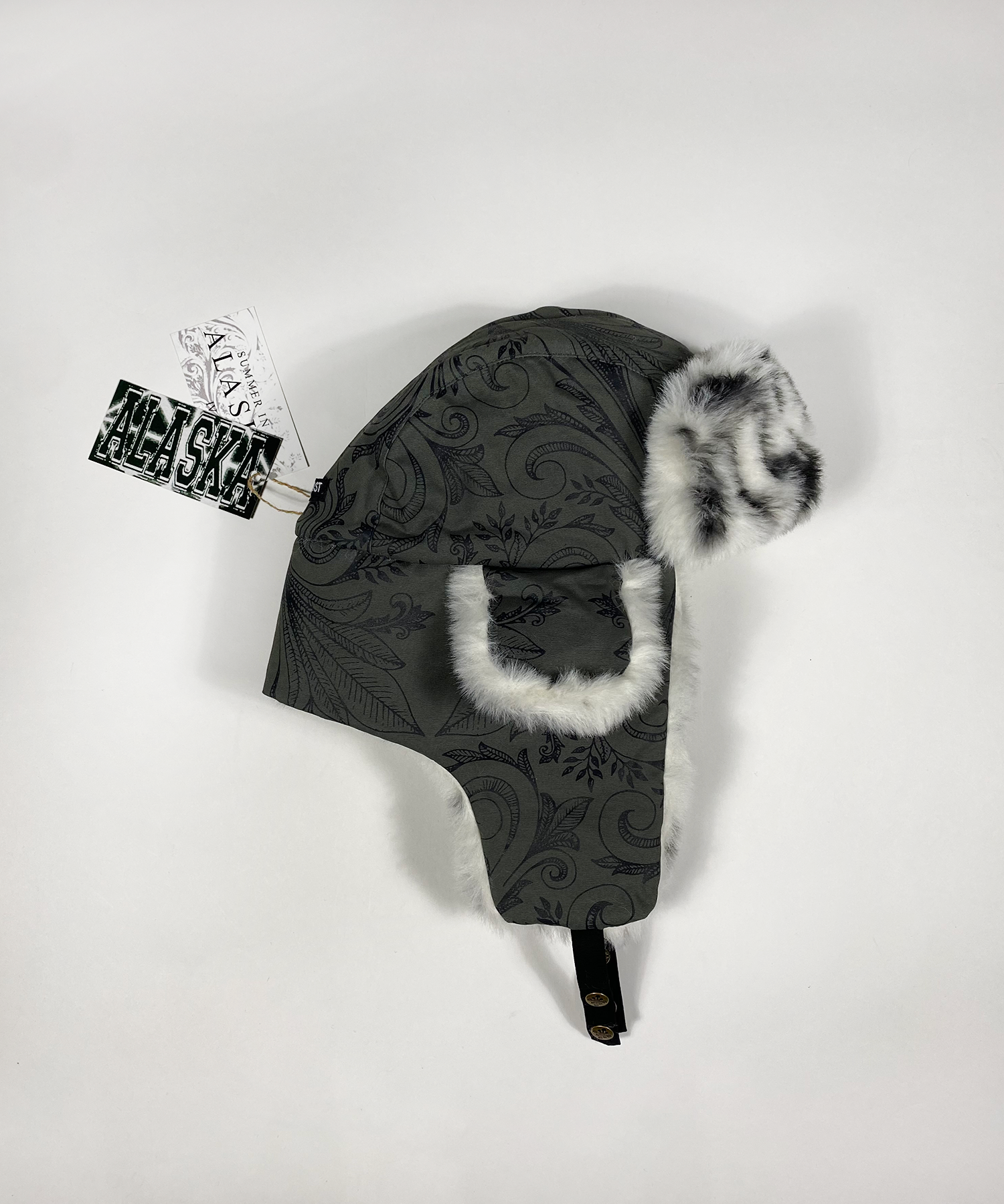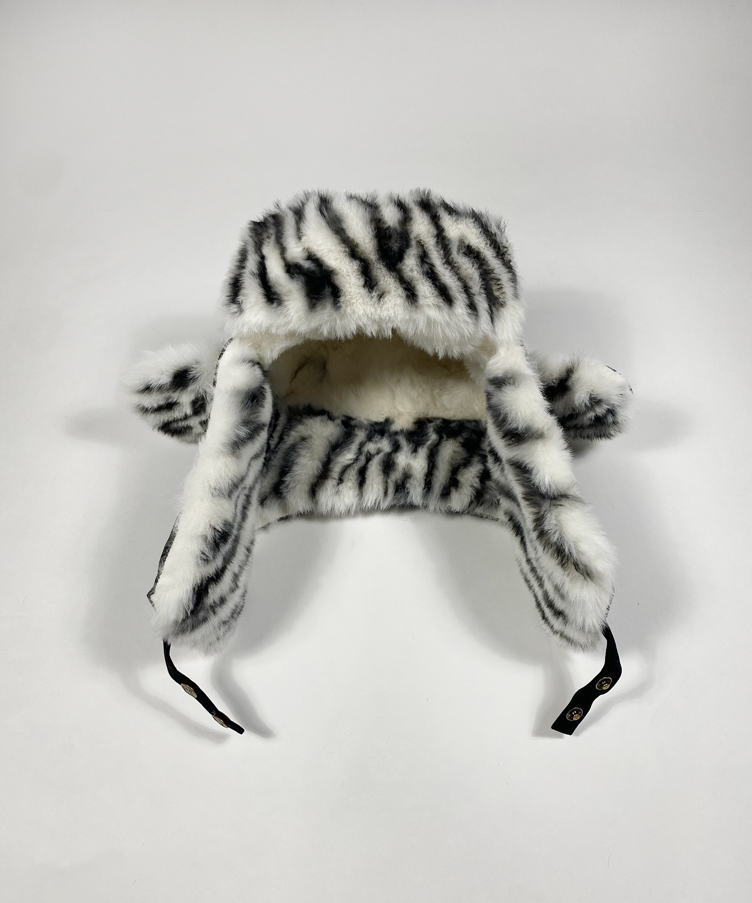 Canvas floral print ushanka w/ faux fur. Hand airbrushed zebra print, each one 1 of 1