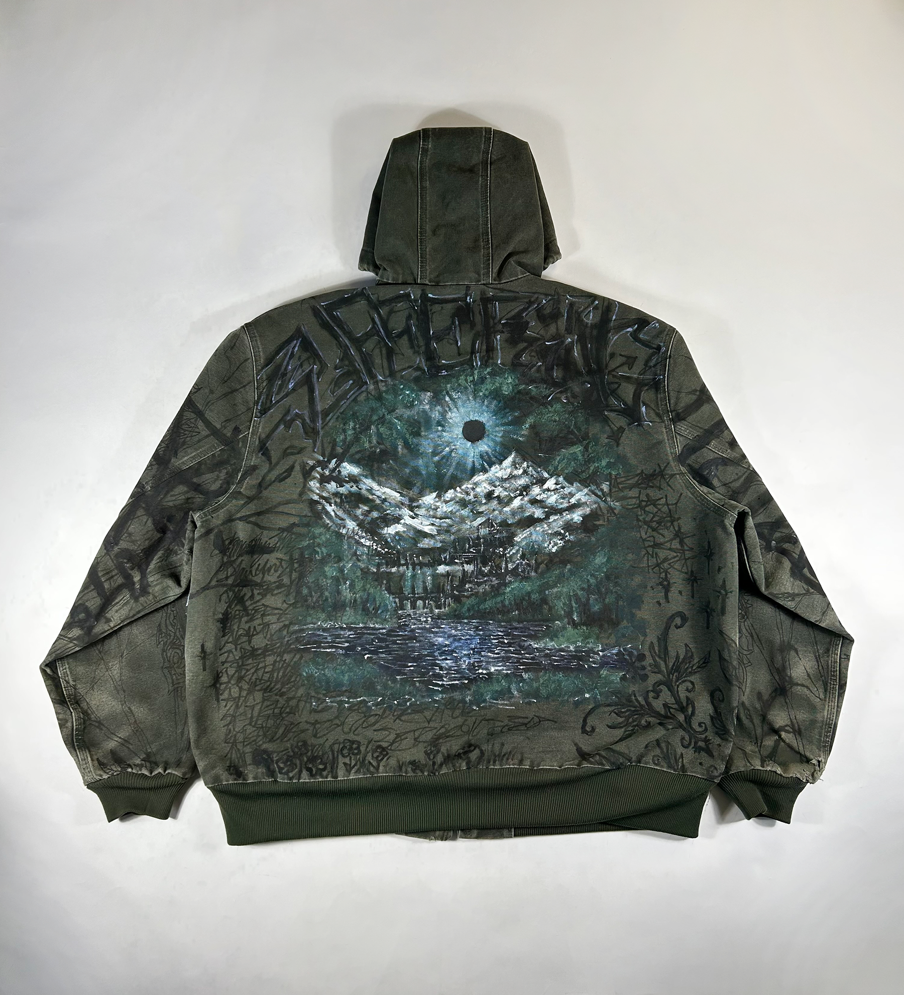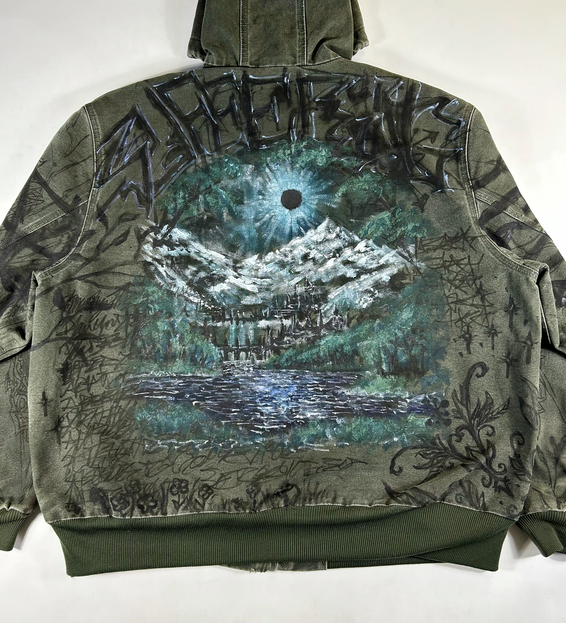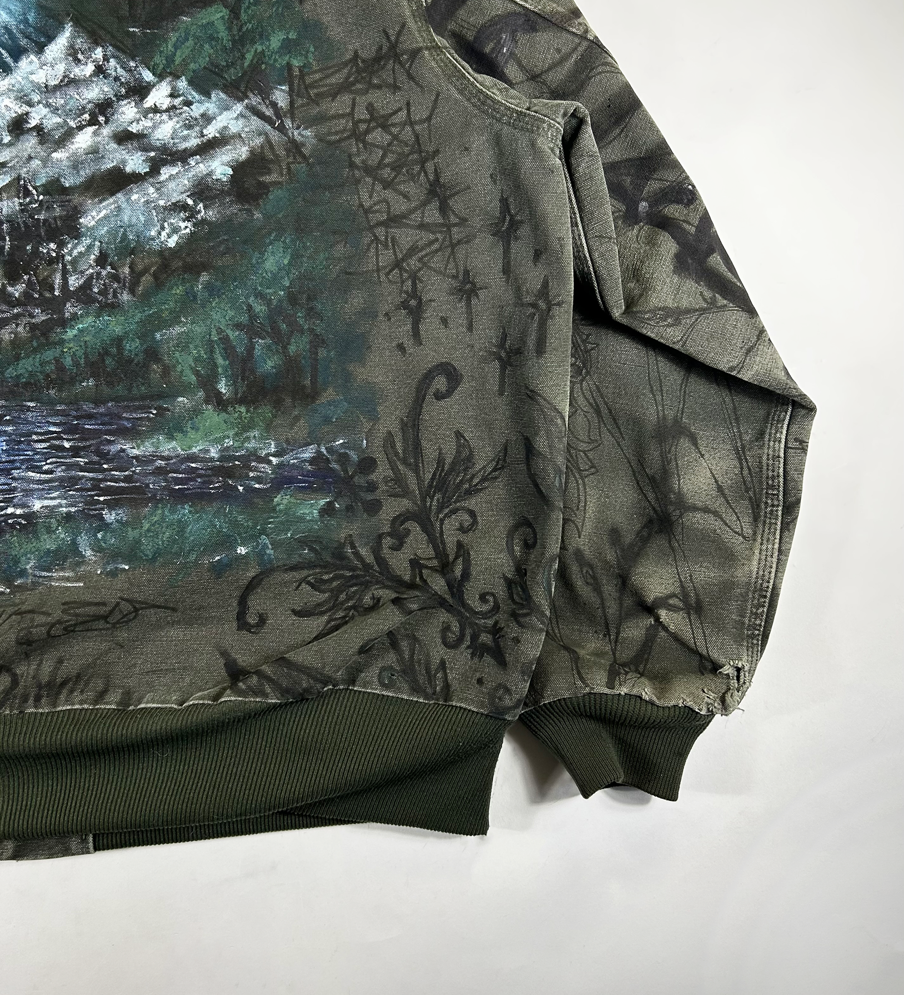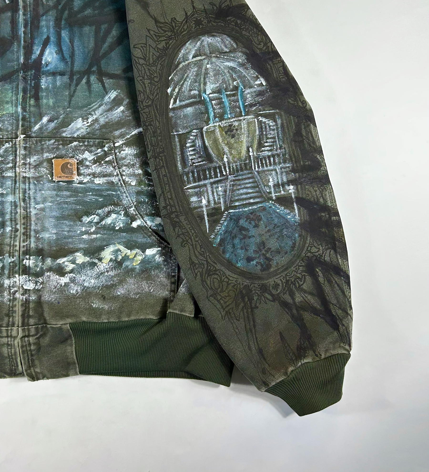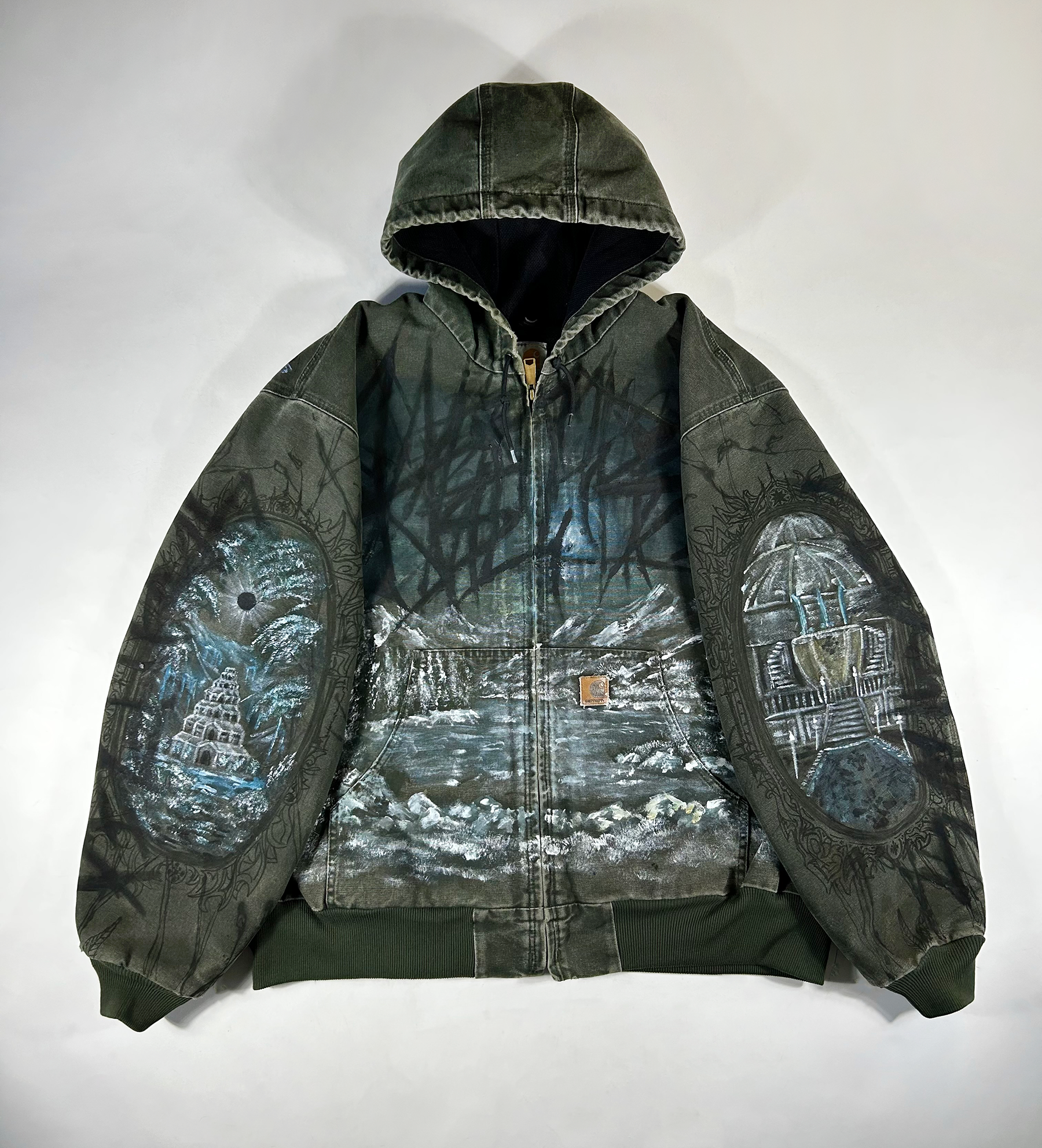 1 of 1 hand-drawn/painted vintage carhartt work jacket.