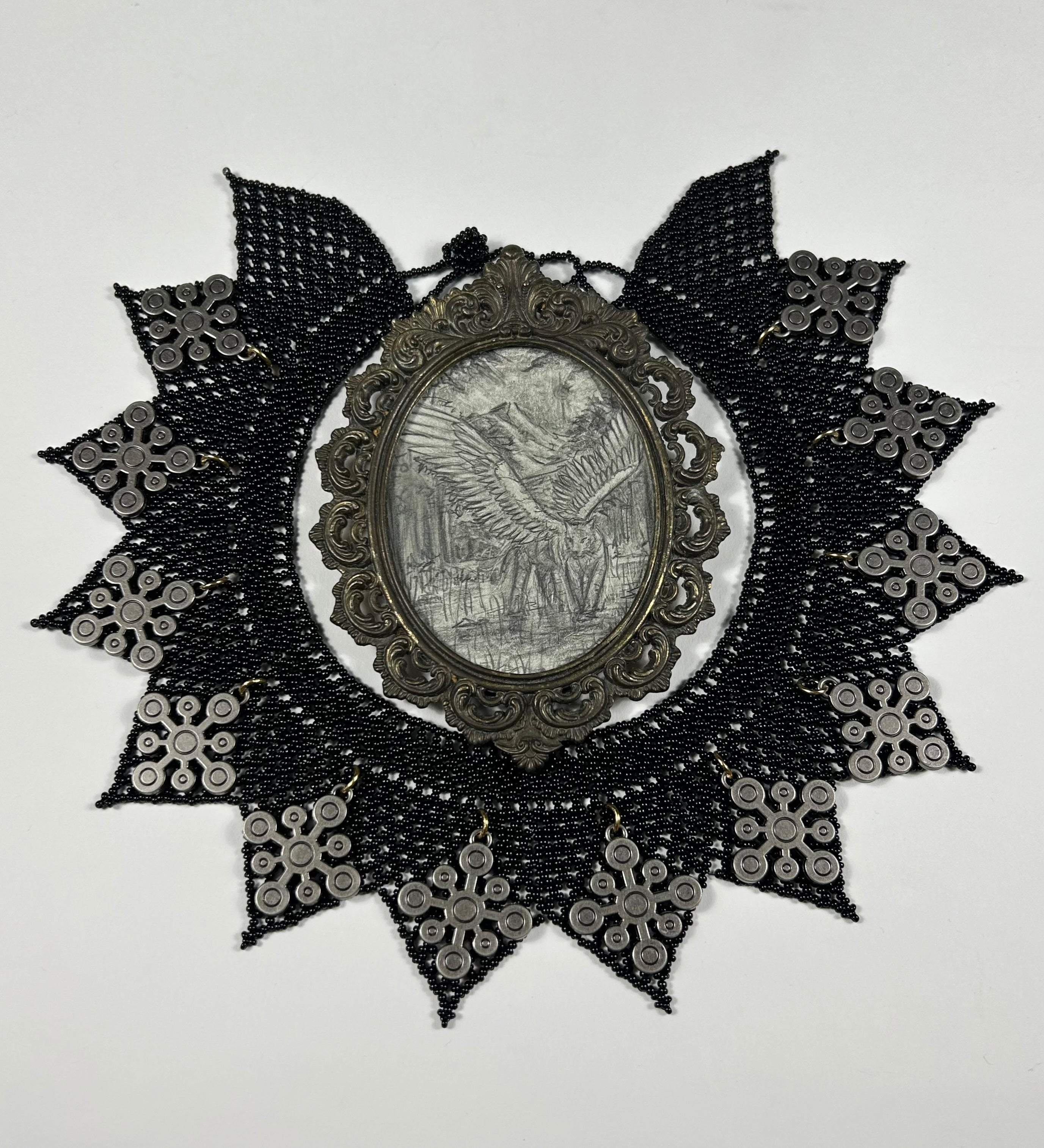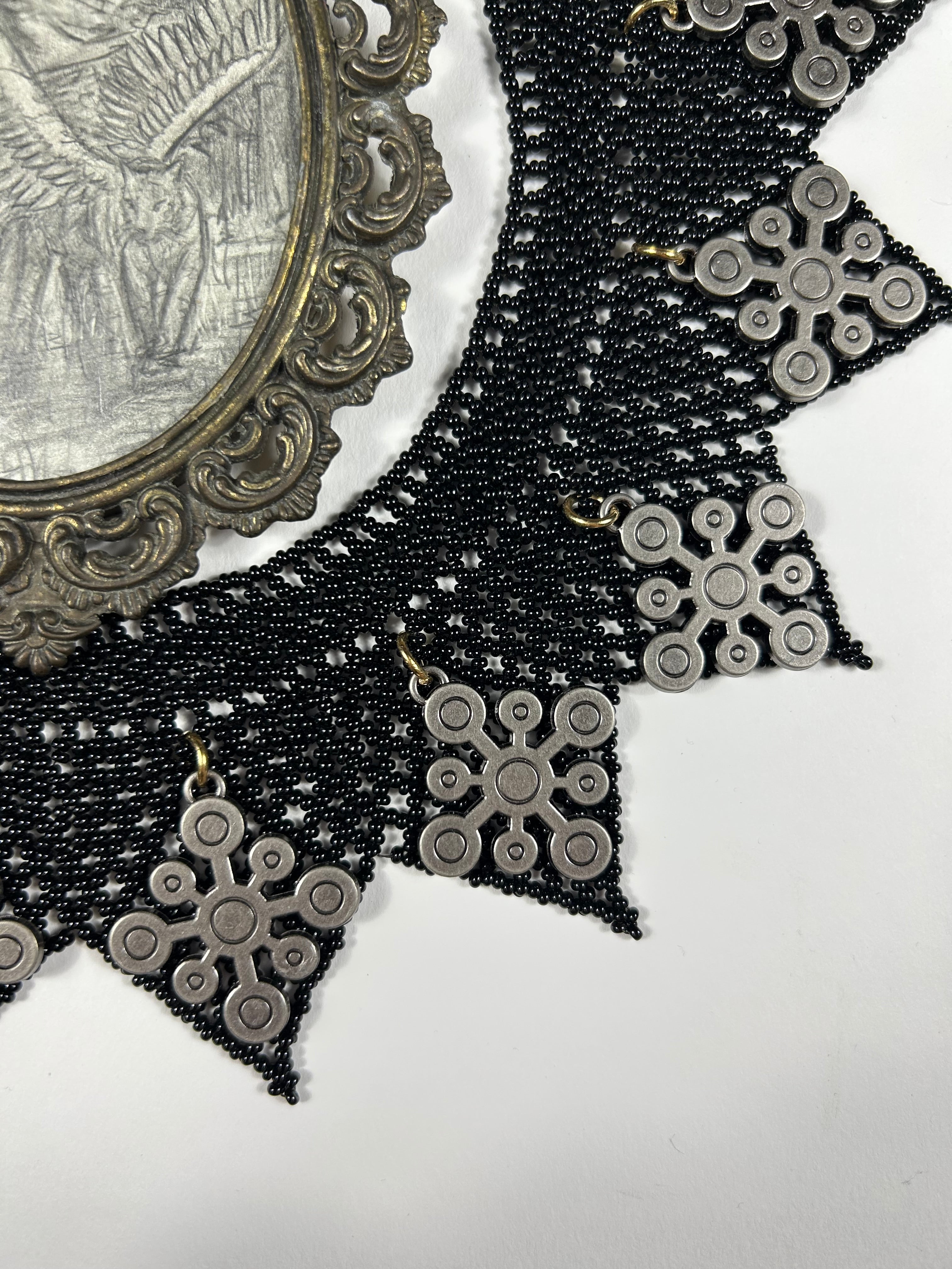 1 of 1 vintage beaded collar with JAKISCHRIST logo pendants.