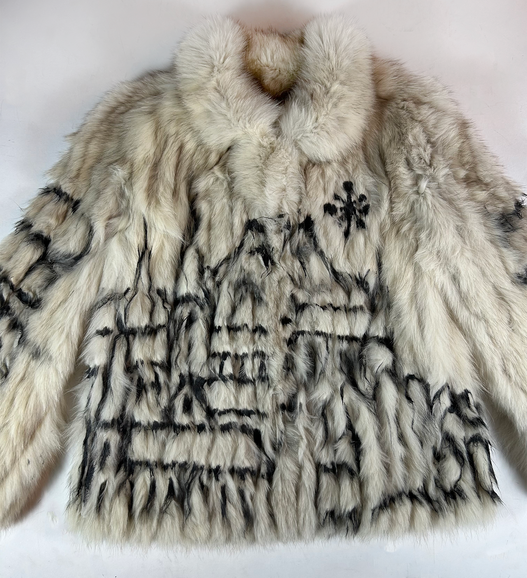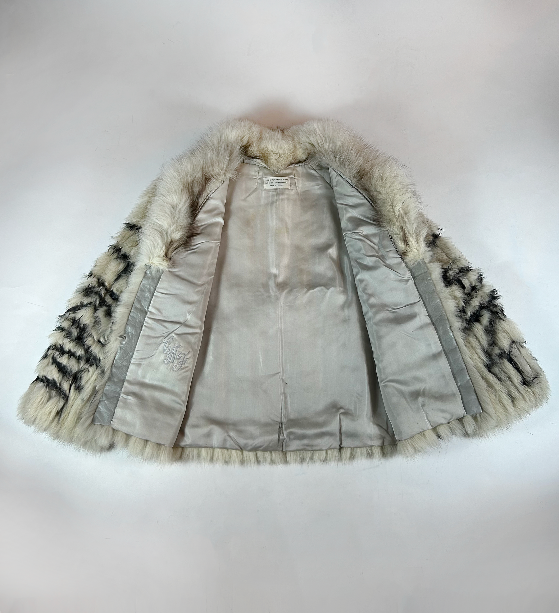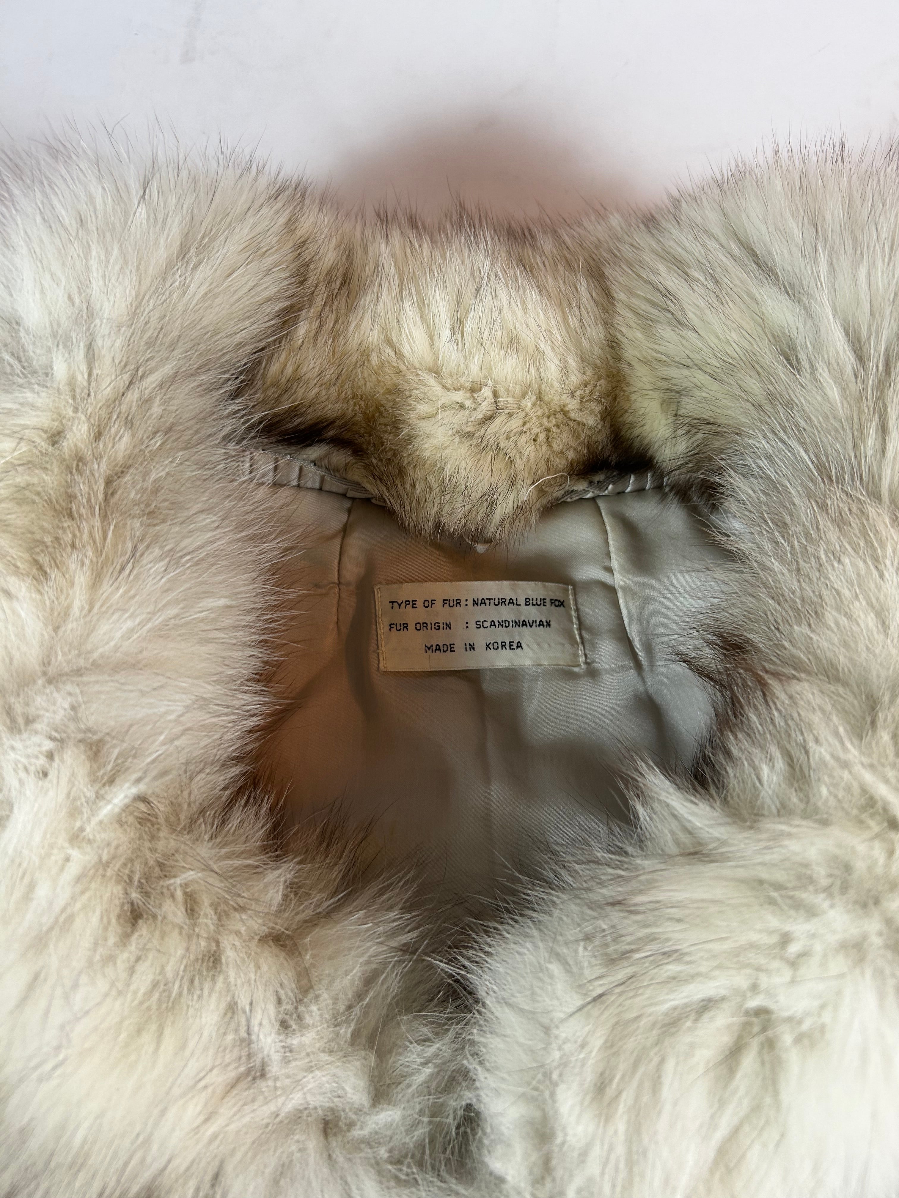 1 of 1 hand painted, vintage natural blue fox fur coat.