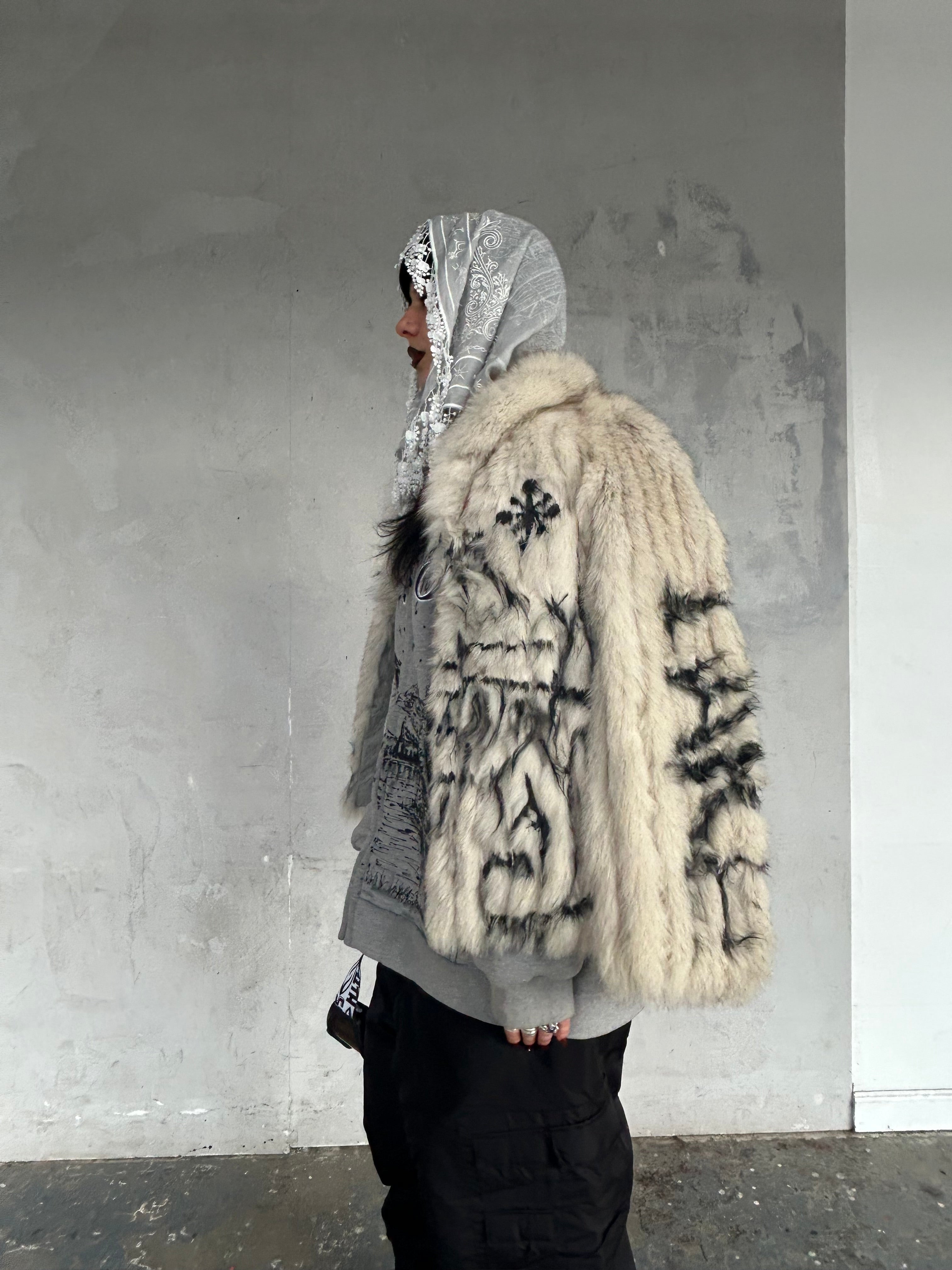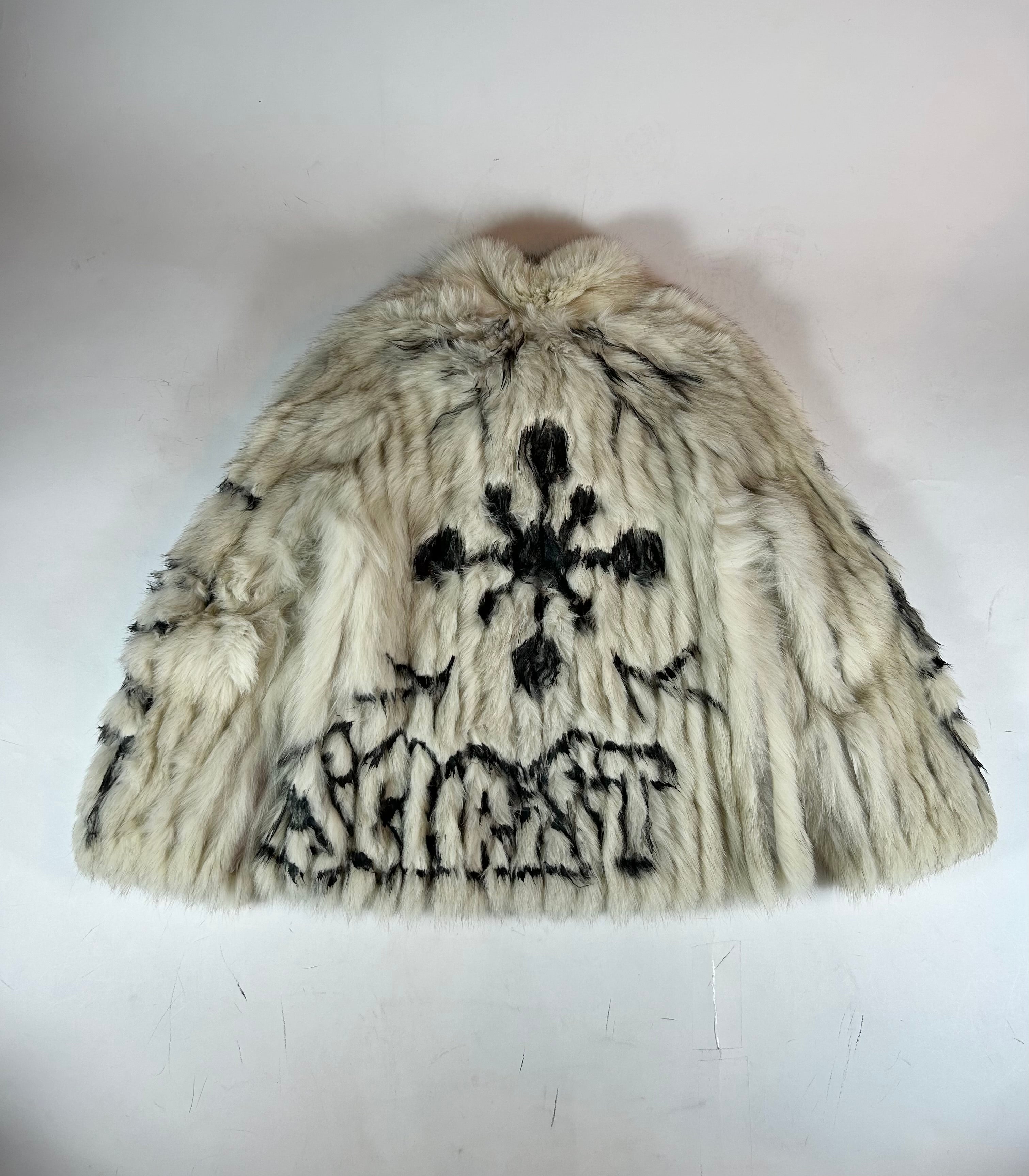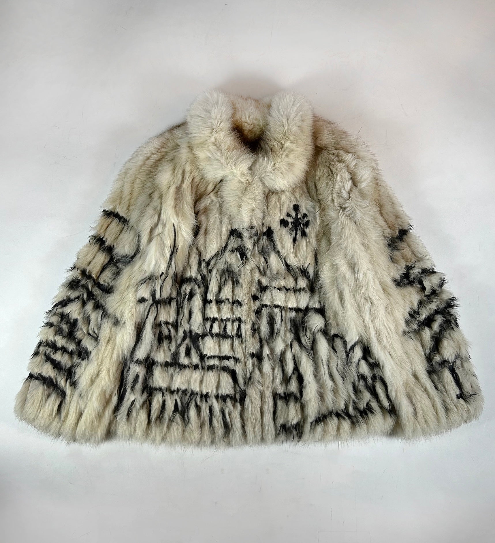 1 of 1 hand painted, vintage natural blue fox fur coat.