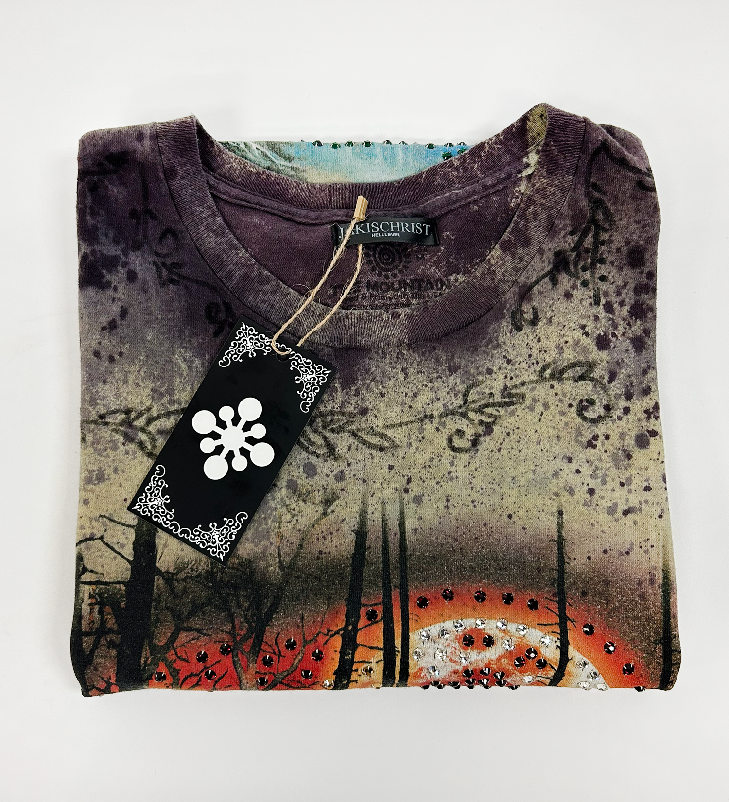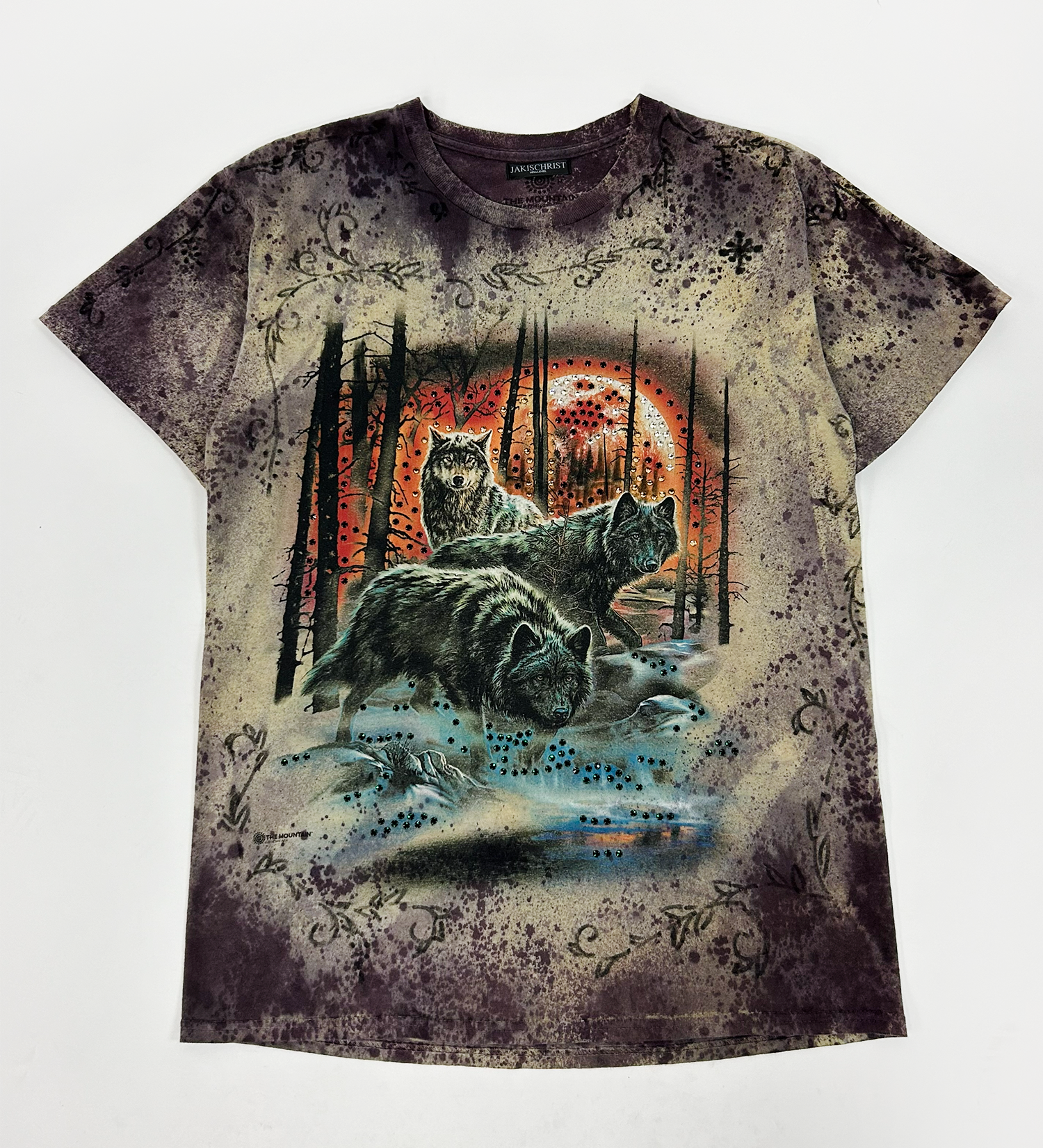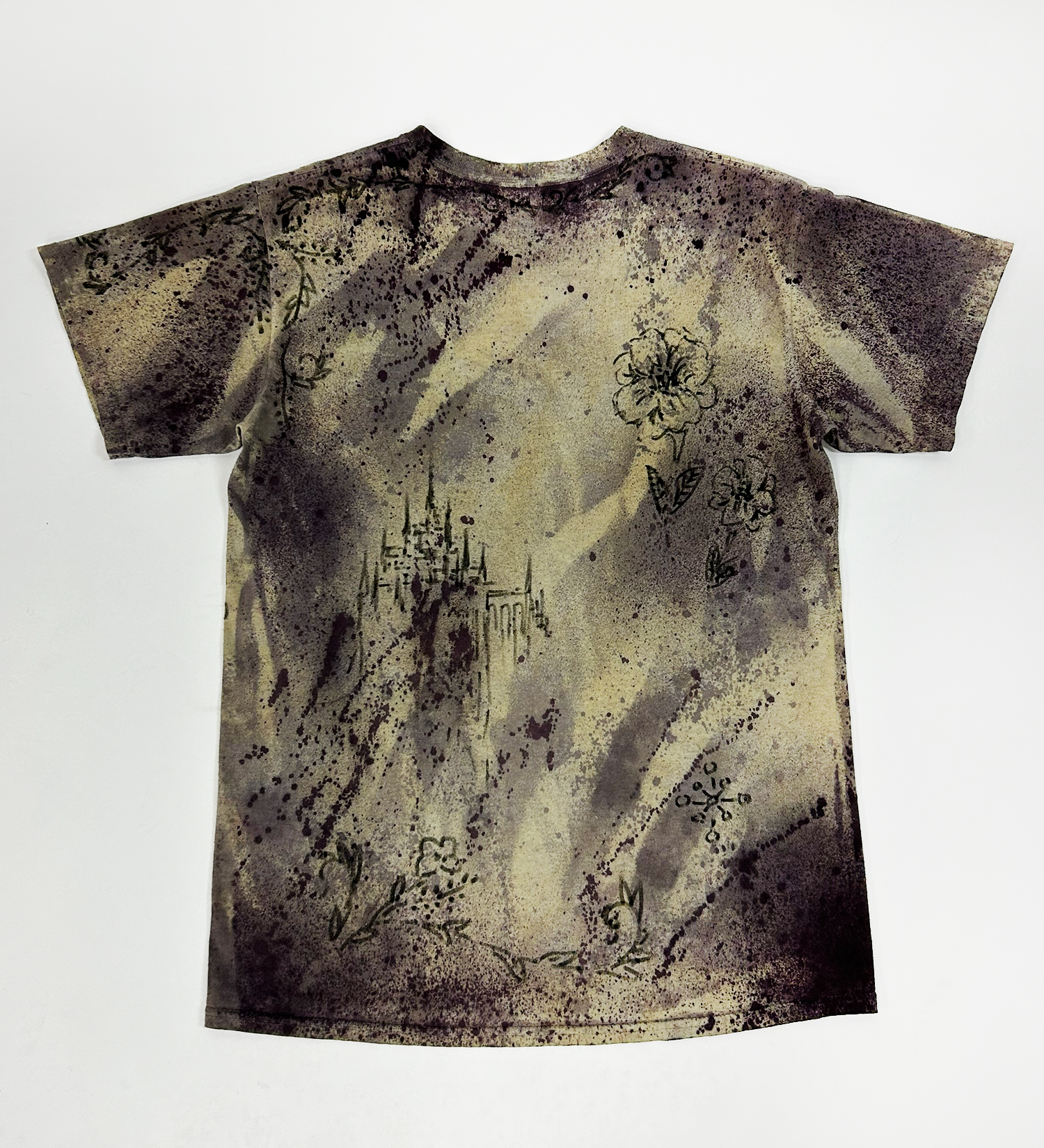 1 of 1 hand dyed, drawn, and studded reworked tee.