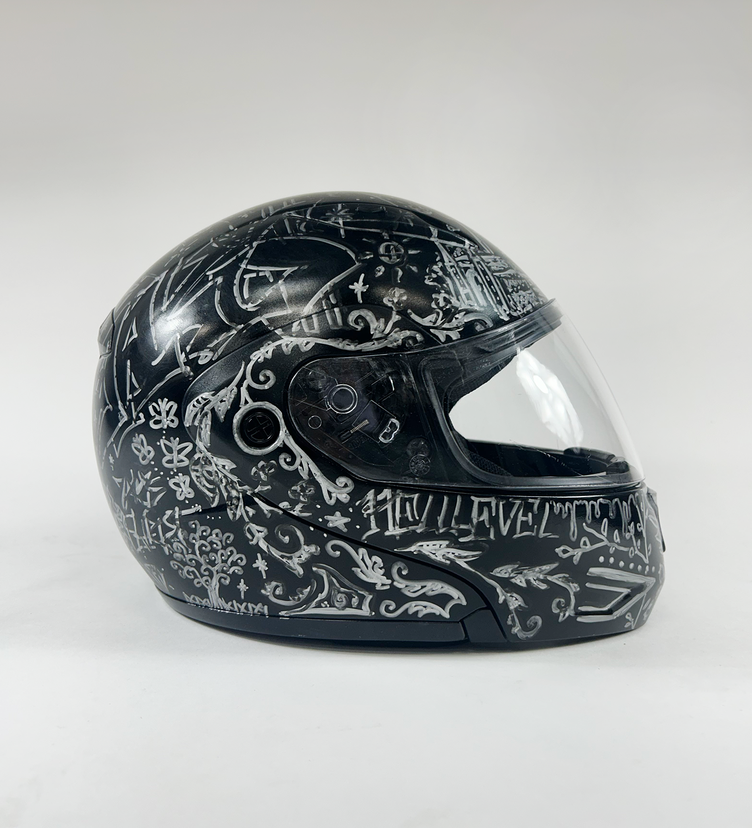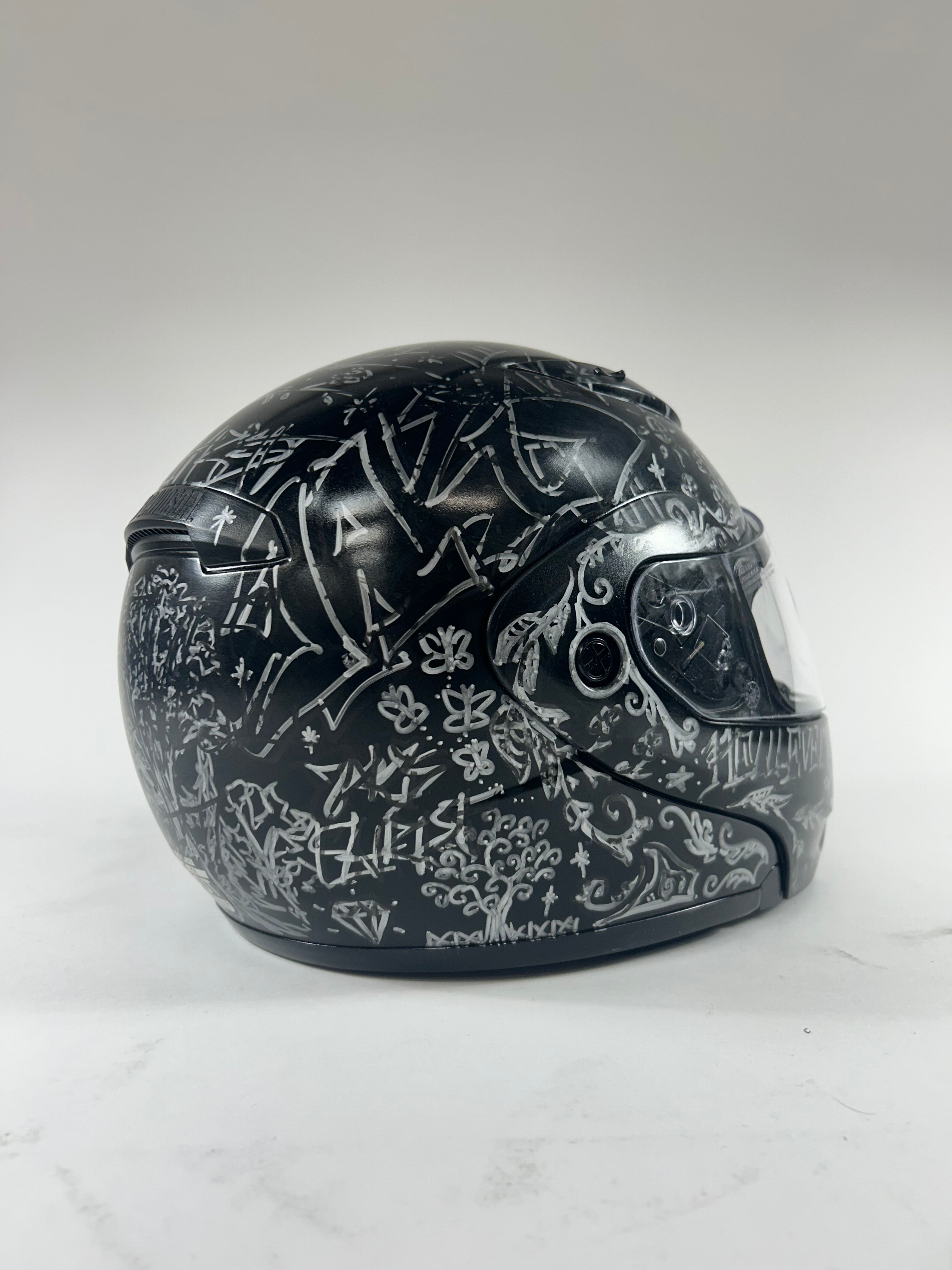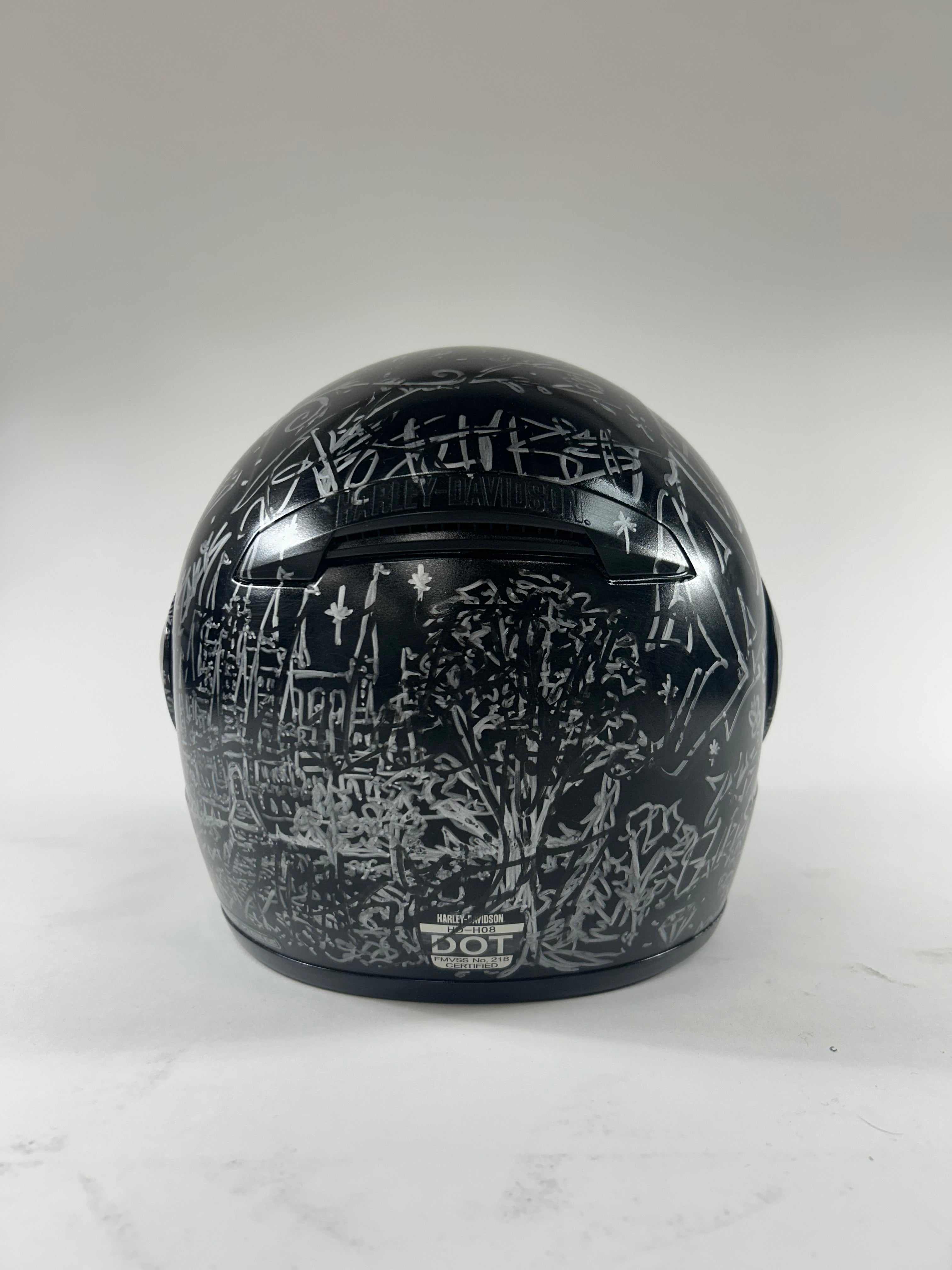 1 of 1 hand-drawn Harley Davidson helmet with all-over "GHOST" artwork.