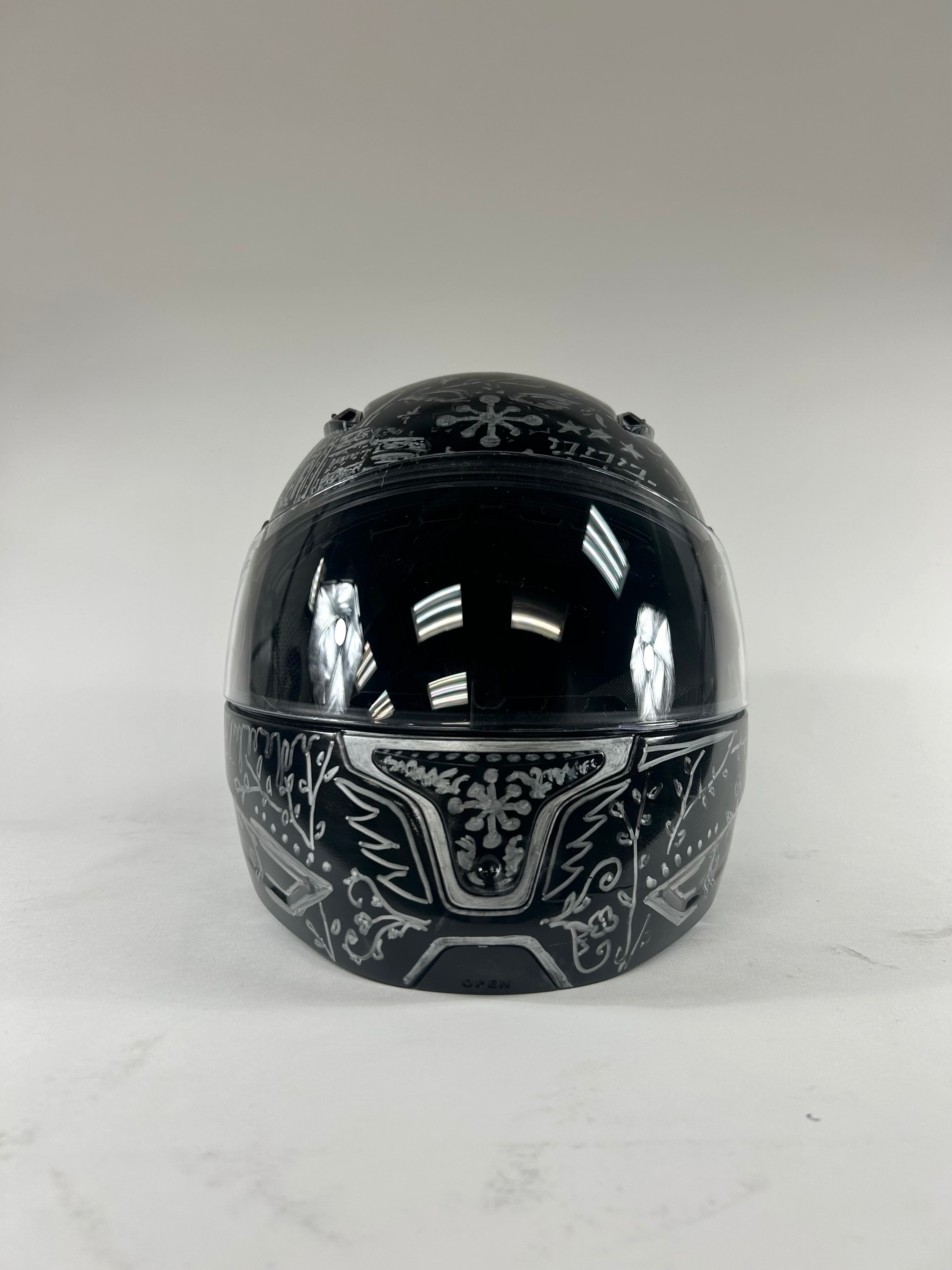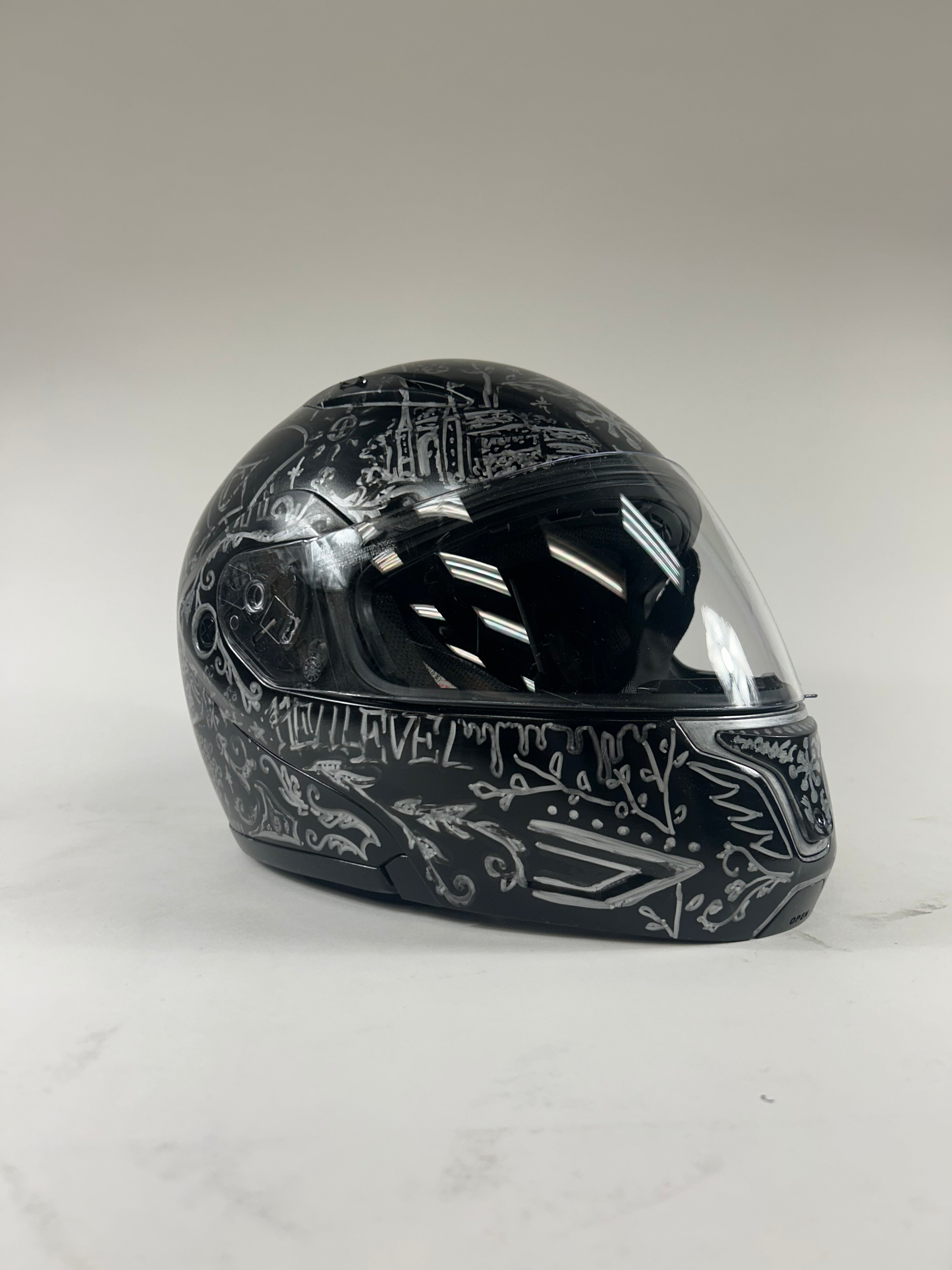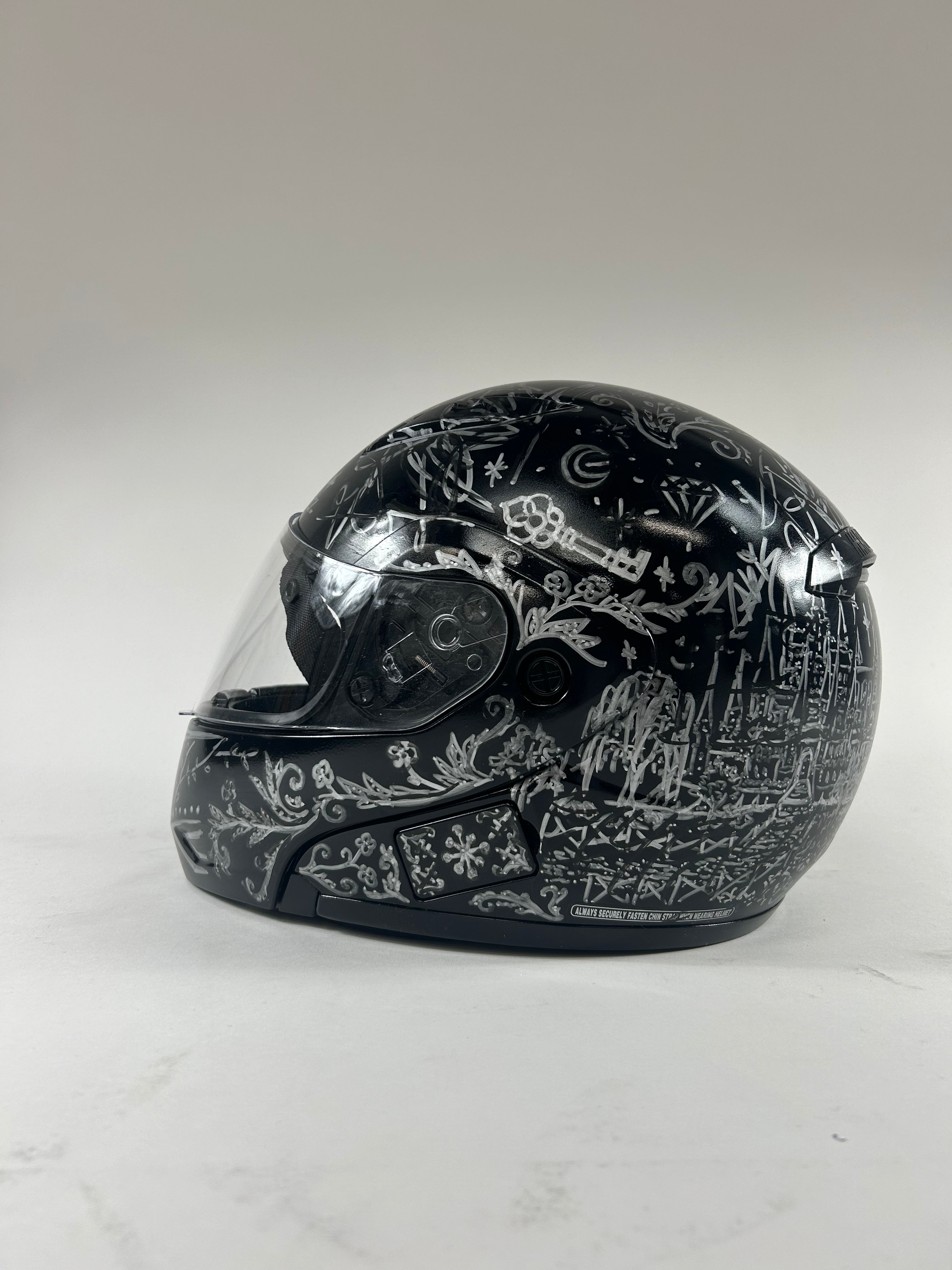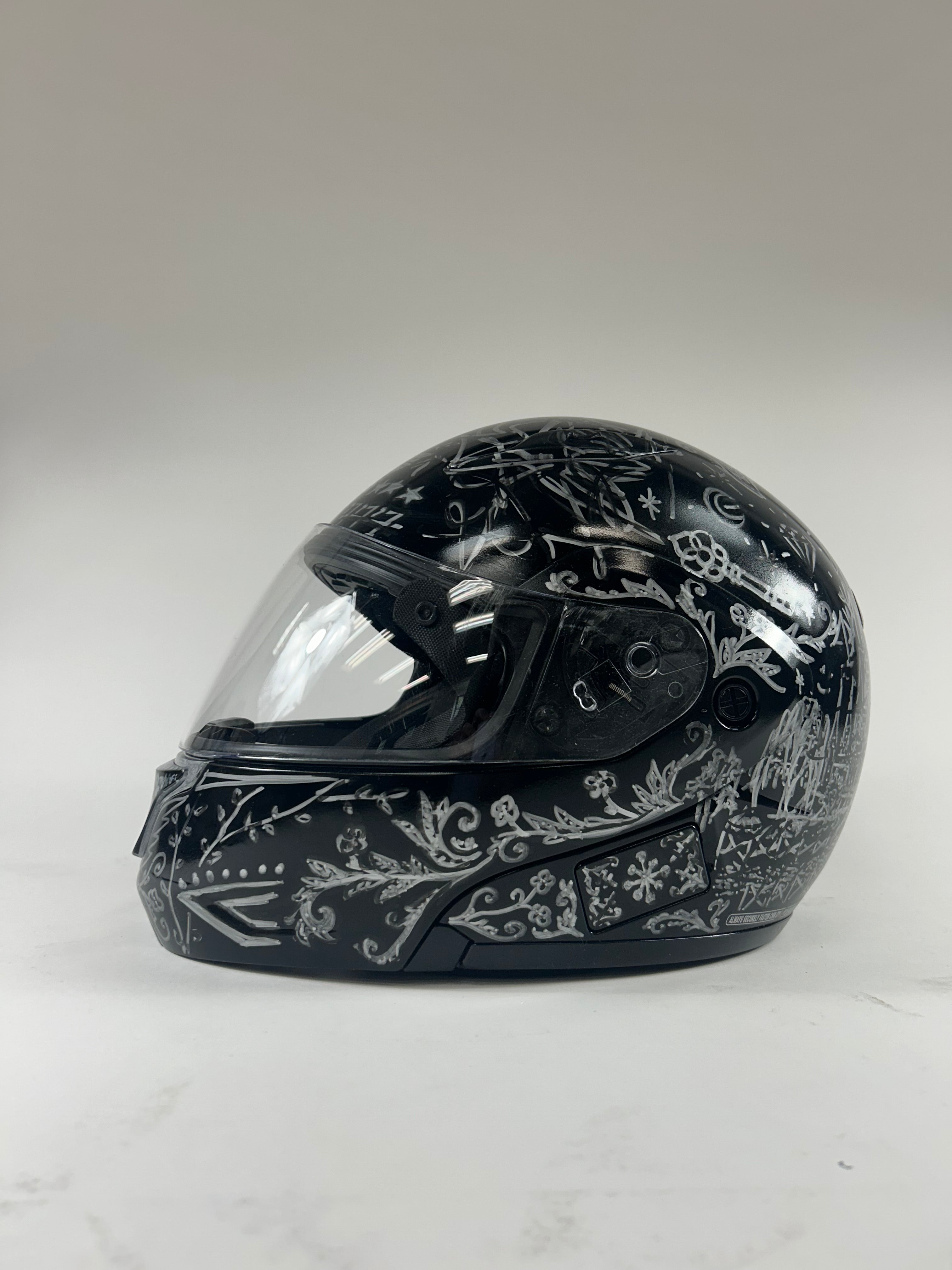 1 of 1 hand-drawn Harley Davidson helmet with all-over "GHOST" artwork.