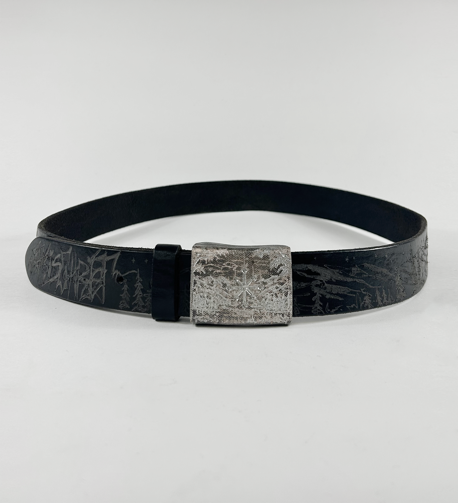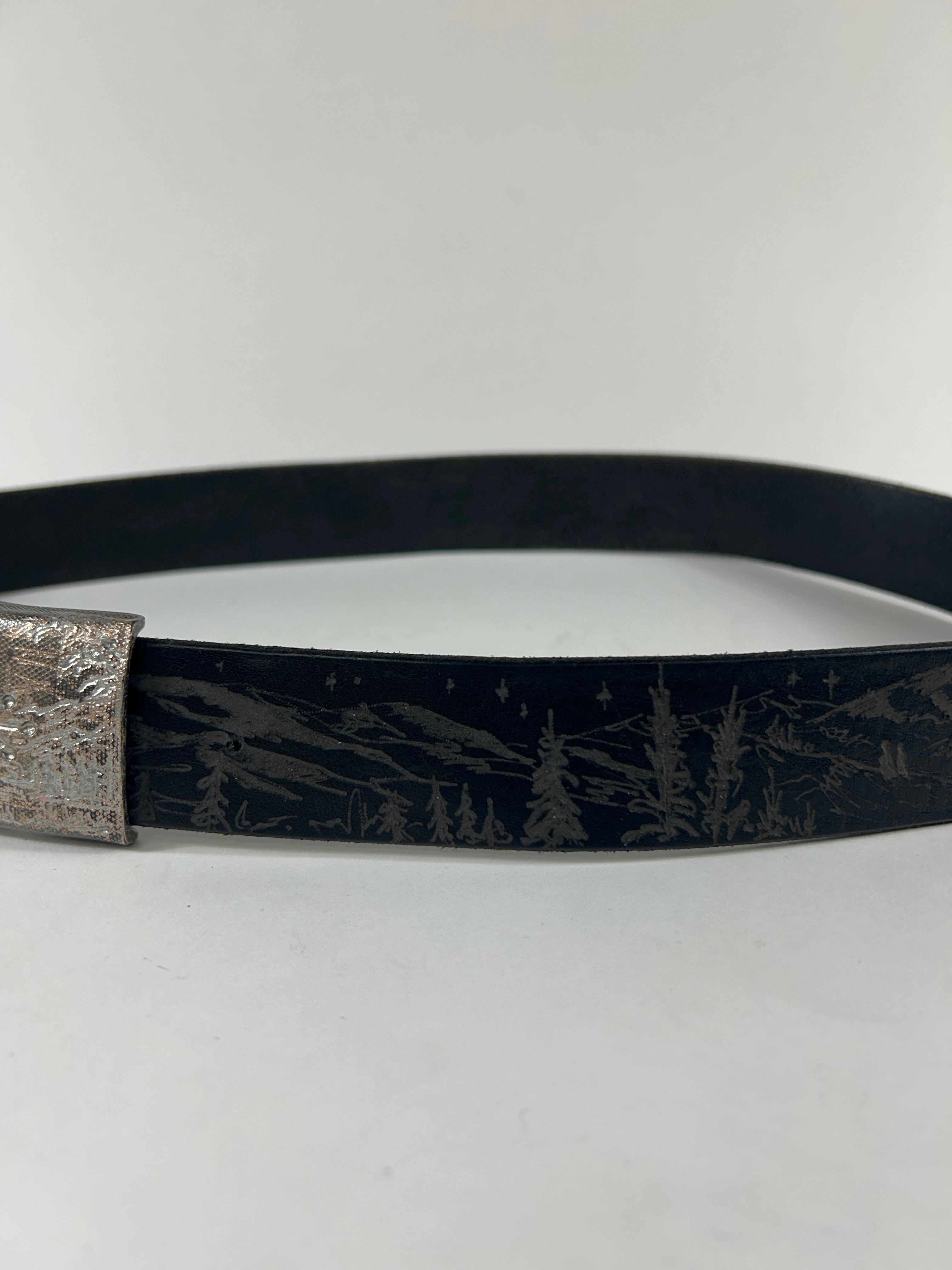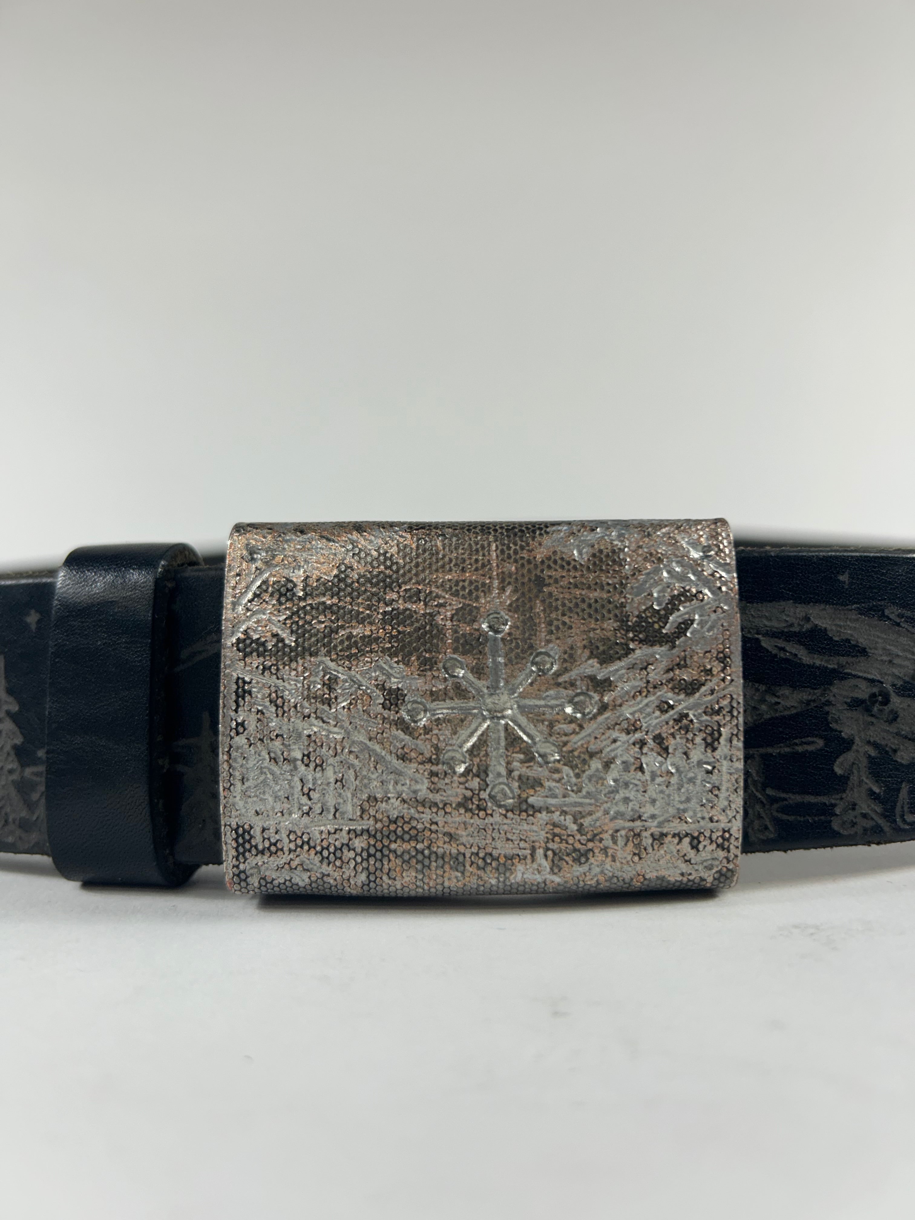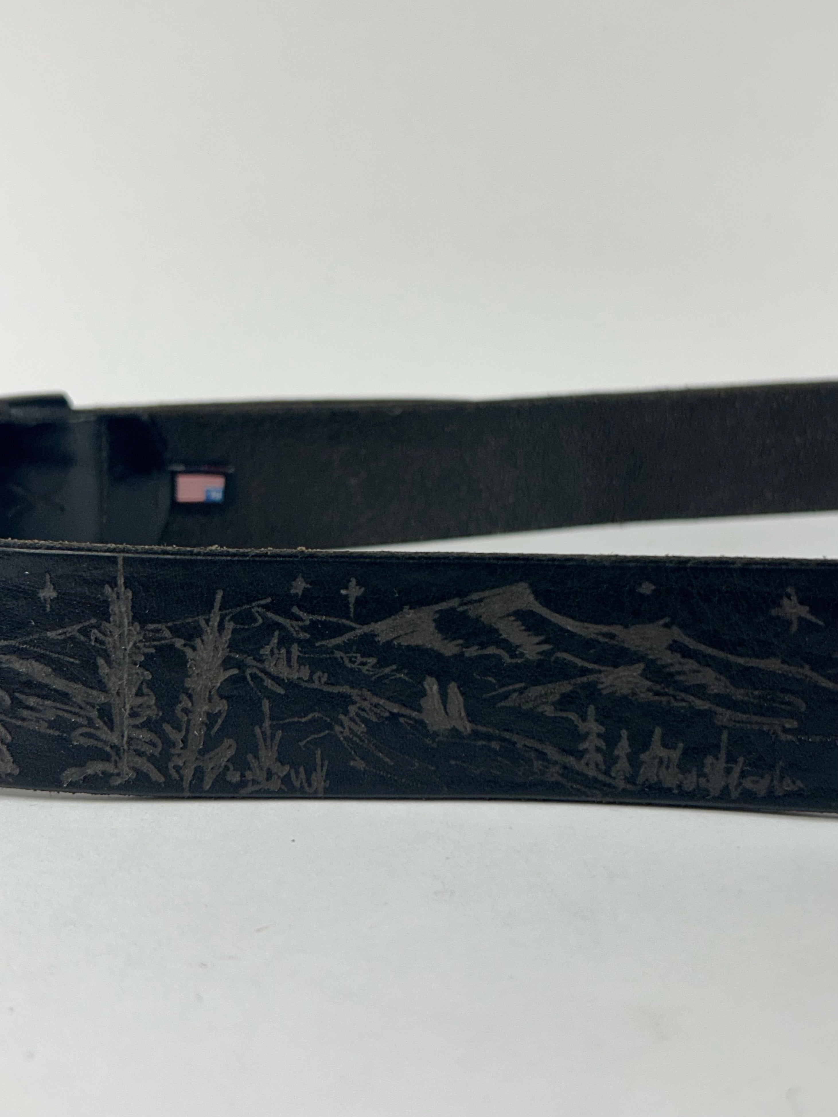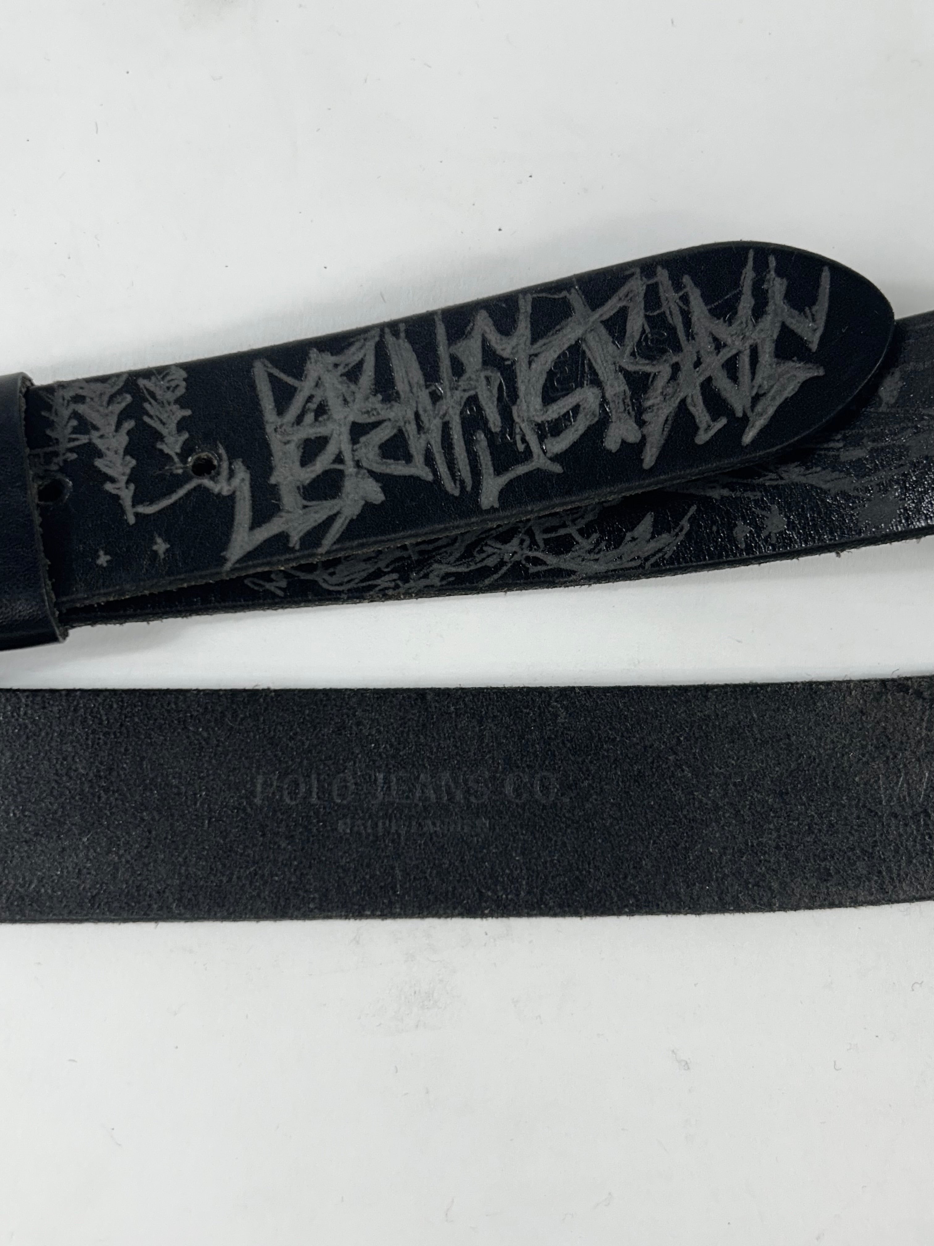 1 of 1 hand-engraved, vintage Ralph Lauren genuine leather belt and belt buckle.