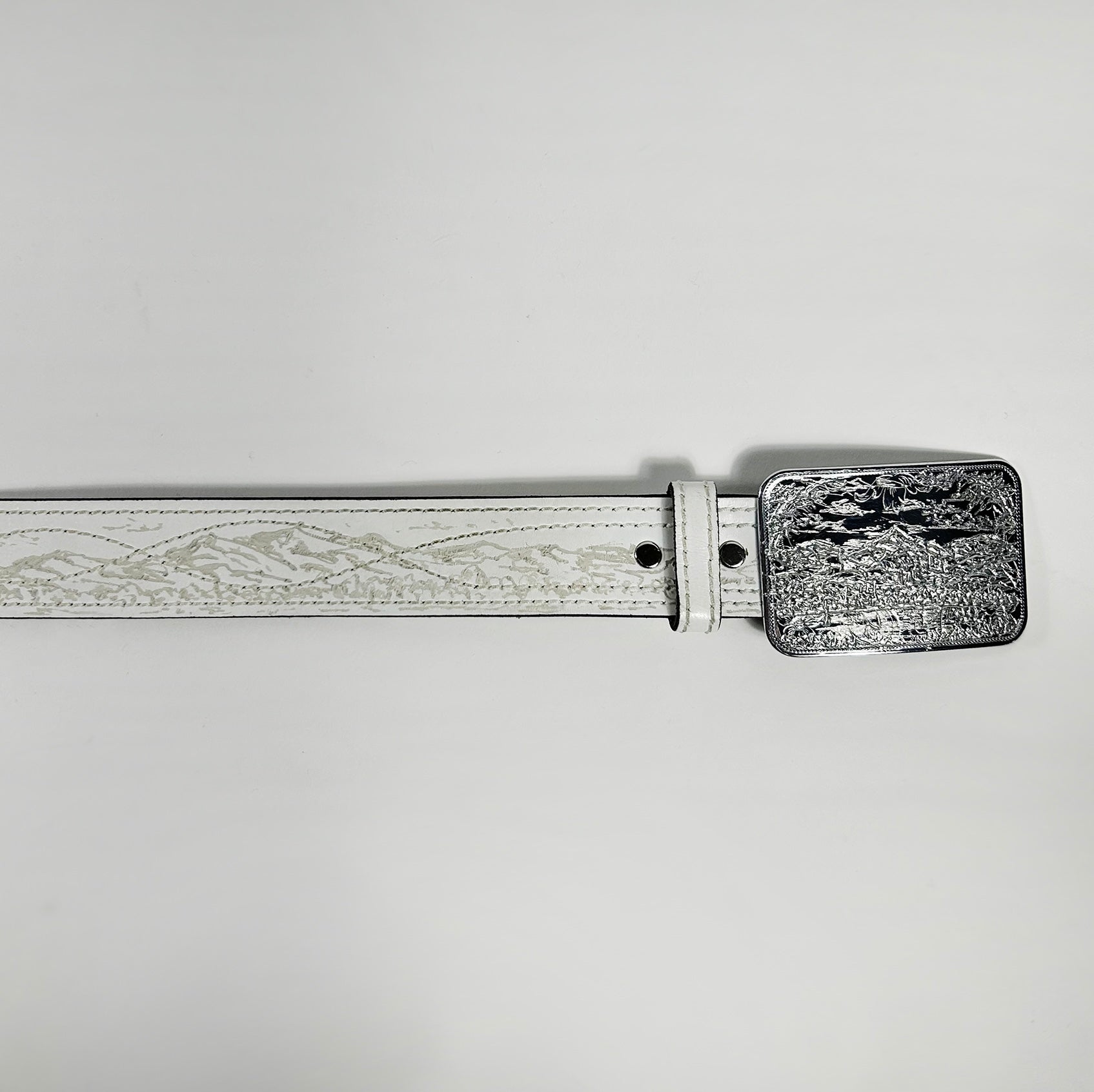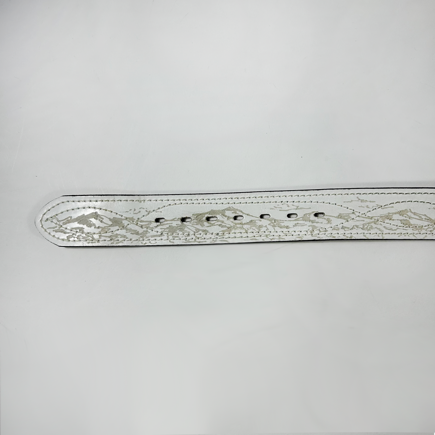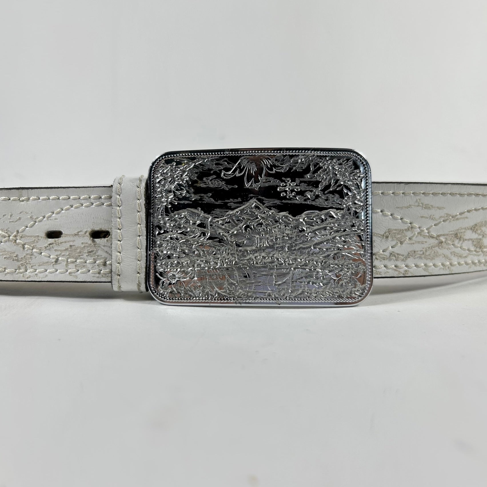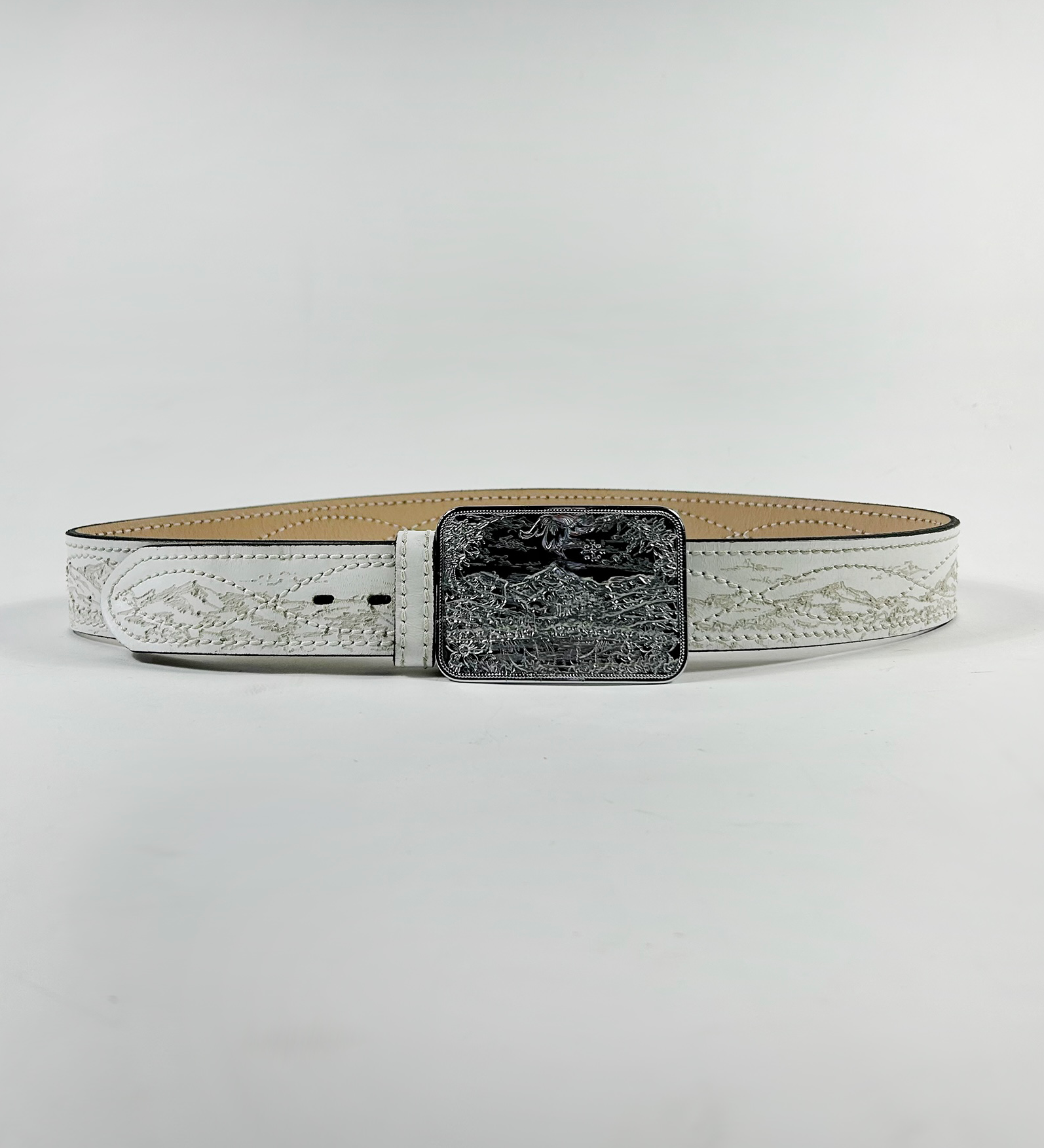 1 of 1 hand-engraved vintage genuine leather belt and belt buckle.